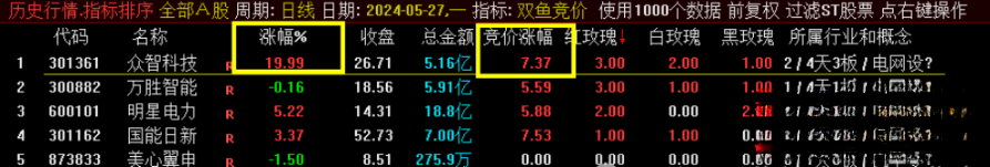 (【双鱼竞价】最新2024排序选股竞价系统指标 红玫瑰、白玫瑰和黑玫瑰,把主板,创业板预判涨停一网打尽)