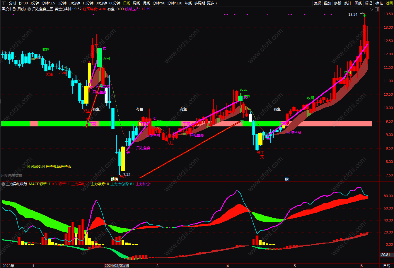 【财富池_量能分析】红粉黄绿四色绝版官方原创核心指,还原个股真实走势(量能判断)