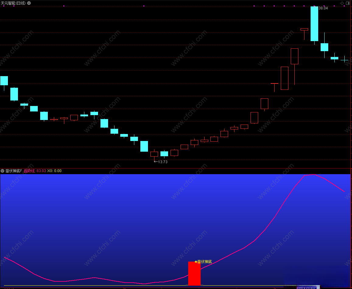 (通达信【潜伏神底】附图选股指标底部右侧拉升波段思路寻找神奇的底部手机电脑通用,源码指标分享)