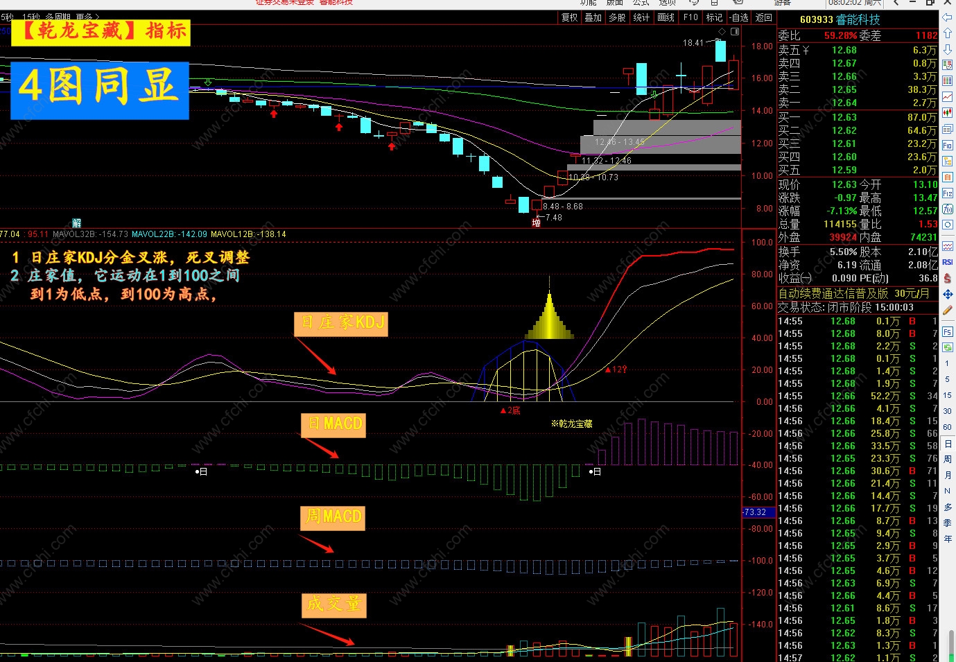 (乾龙宝藏指标 庄家KDJ与周期MACD完美结合 采用4图同显,操作简单,原理清晰,可以一招走天下)