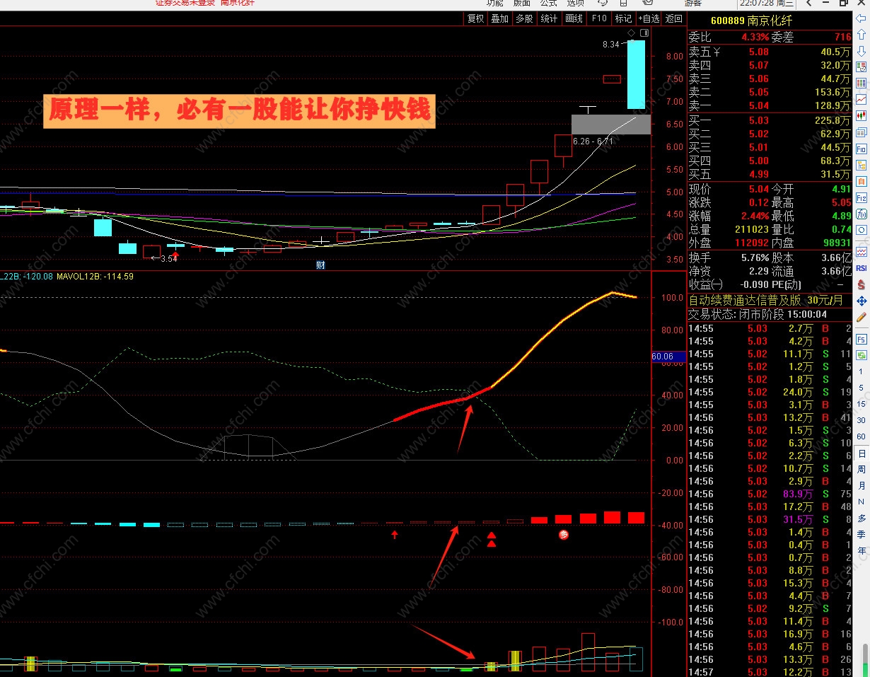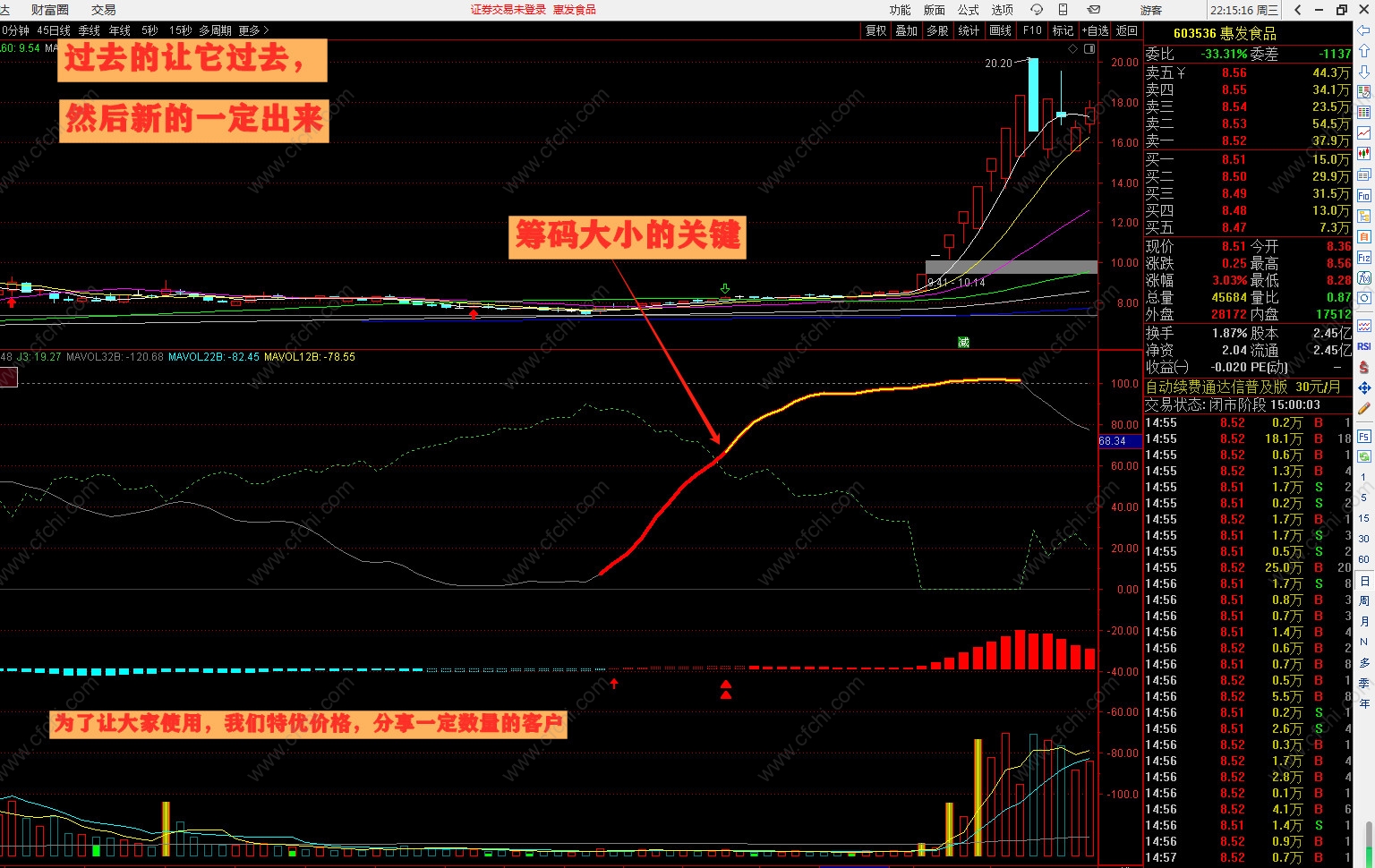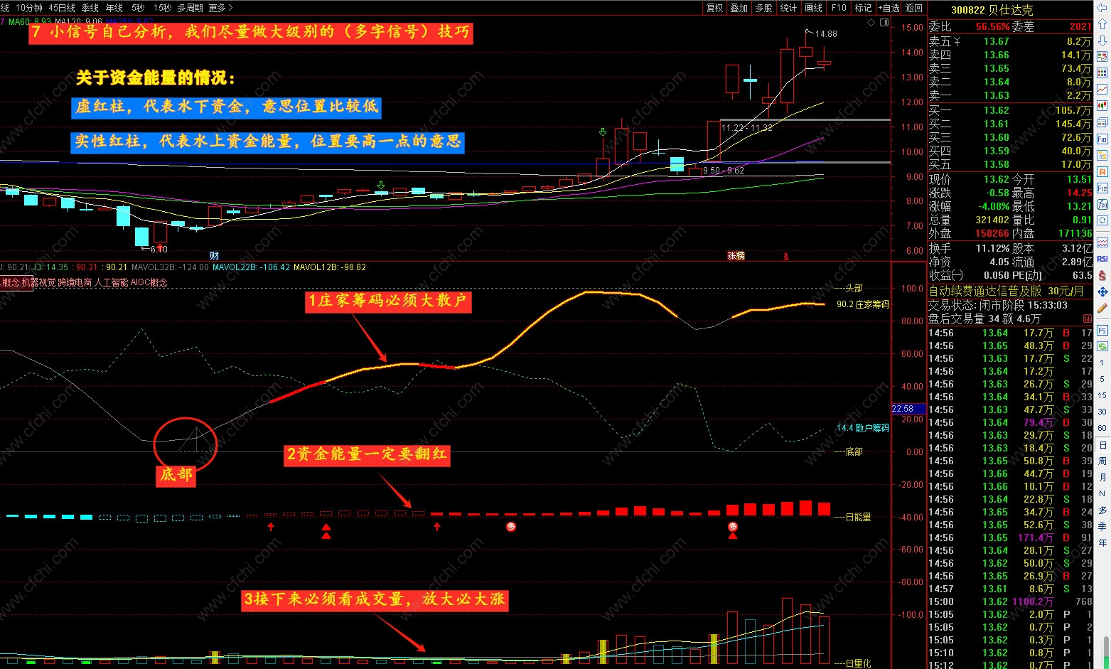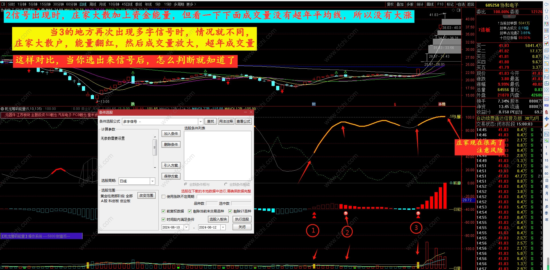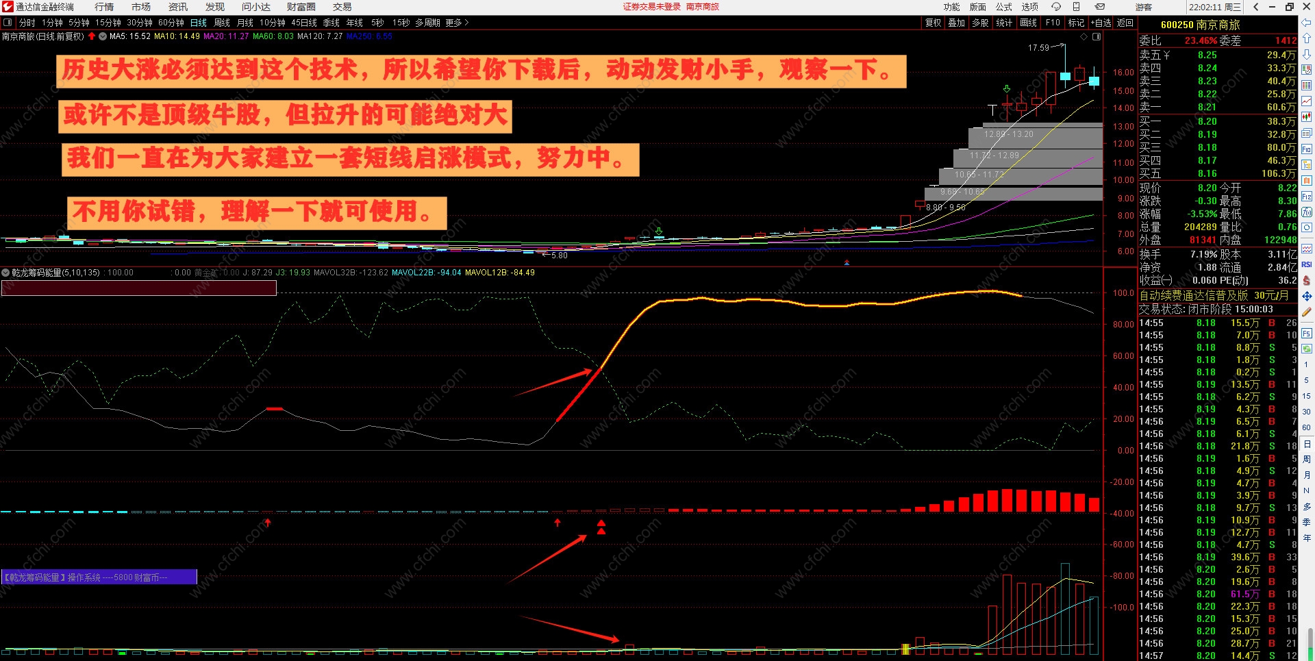 股票要大涨,必须庄家的筹码大于散户,第2,资金能量必须连续进场,第3,必须成交量的放大。短期爆涨,成交量必须超过一年的平均成交量线。掌控了这几点,必成牛股。那么这几个问题,怎么能知道呢?,那就用我们的操作系统。各个条件清晰可见,方法简单。操控可佳。