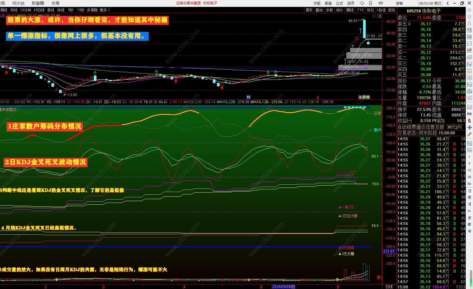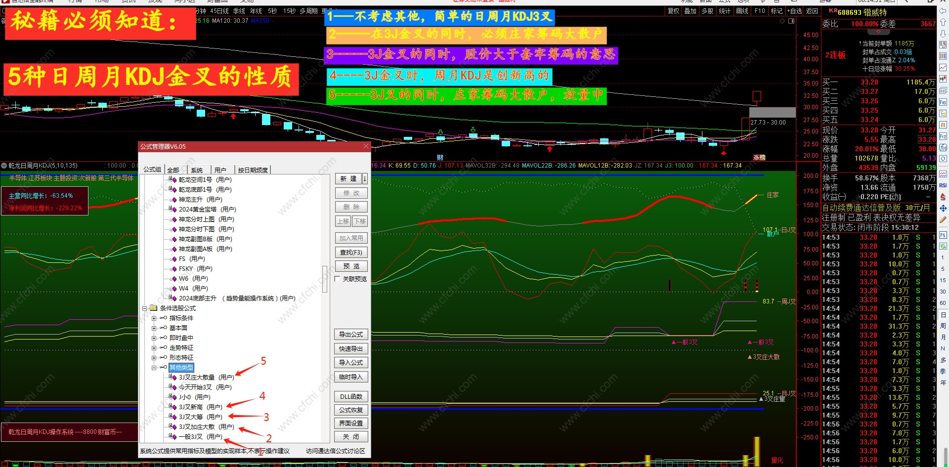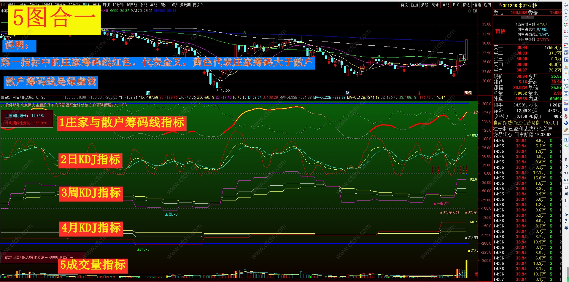 (乾龙日周月KDJ经过优化 连同庄家散户筹码 5图合1 找准共震点了解3J叉性质找到短线爆涨之秘)