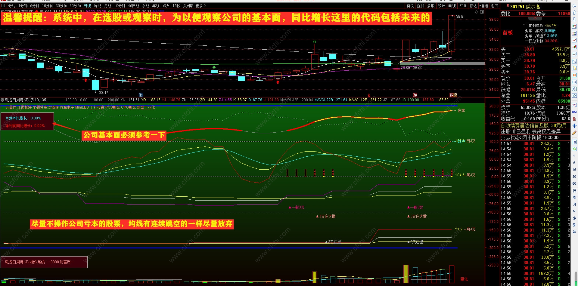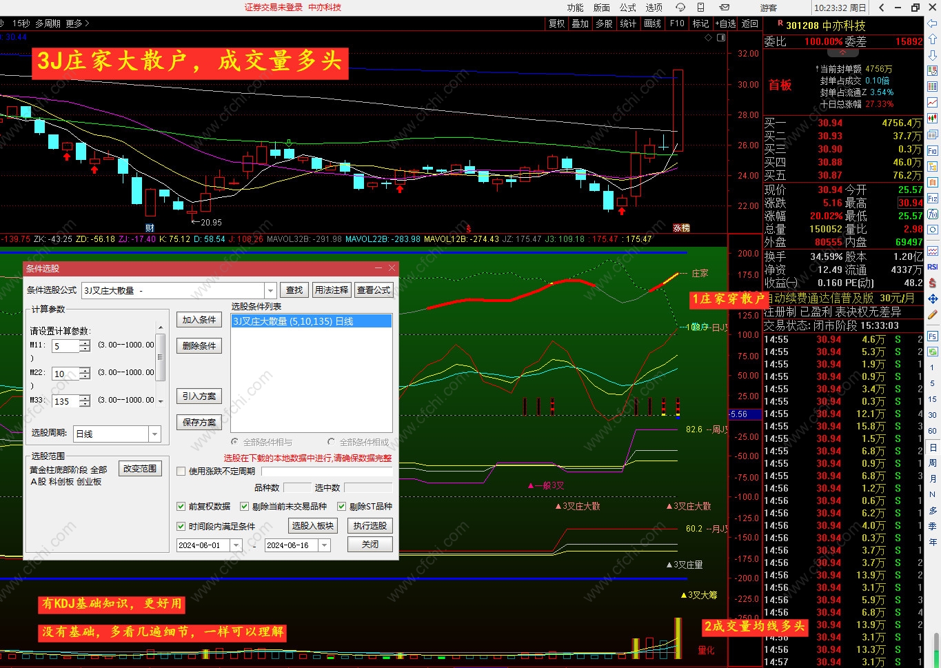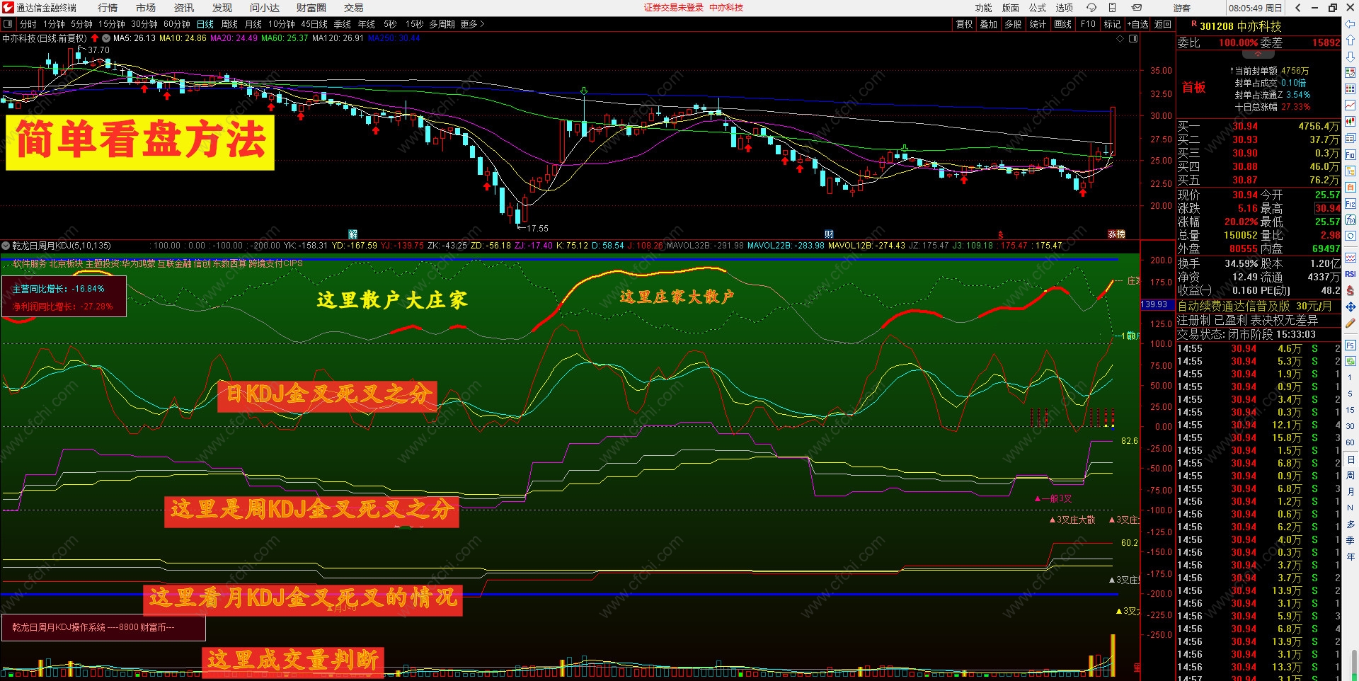 (乾龙日周月KDJ经过优化 连同庄家散户筹码 5图合1 找准共震点了解3J叉性质找到短线爆涨之秘)