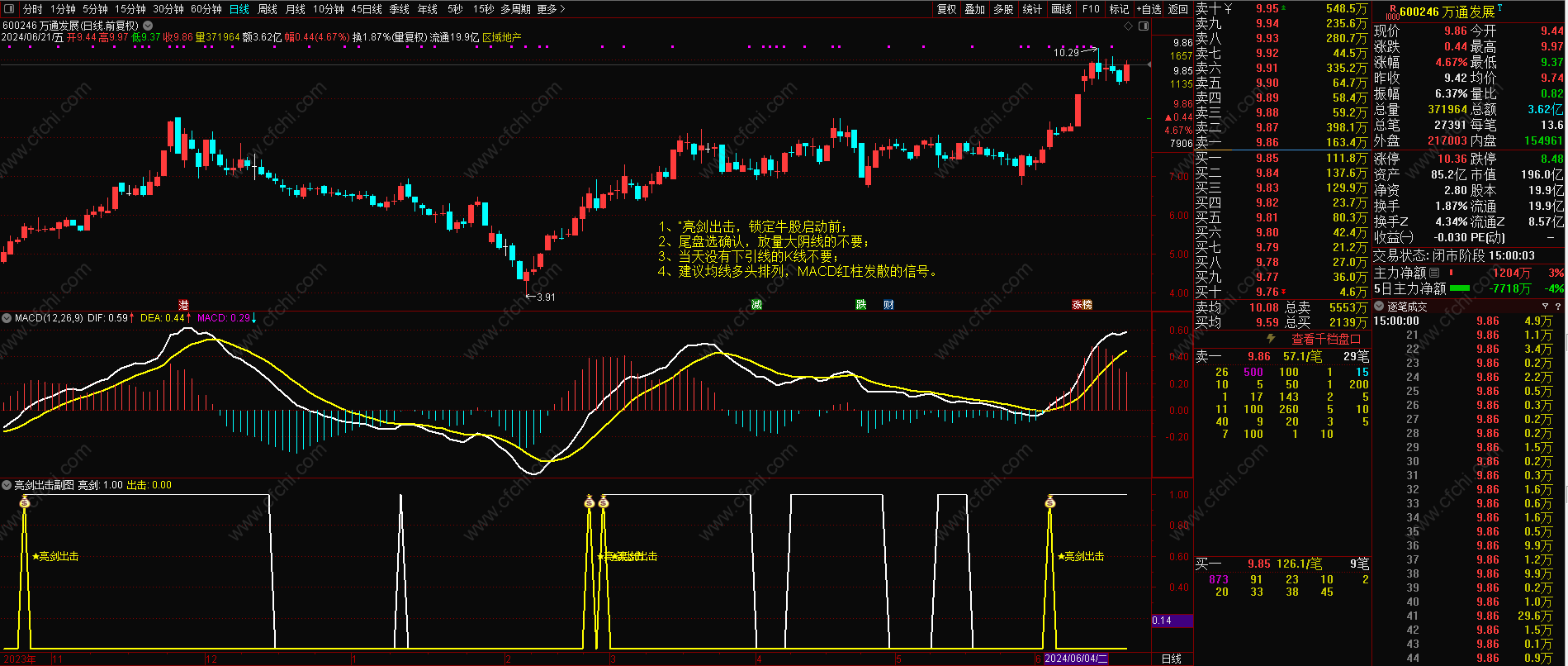 (通达信亮剑出击副图/选股指标 尾盘选股 源码附图)
