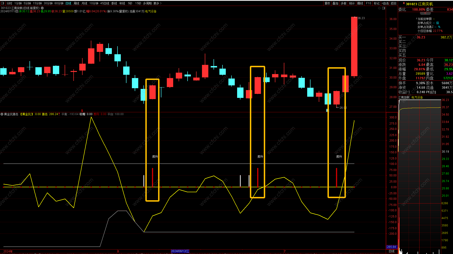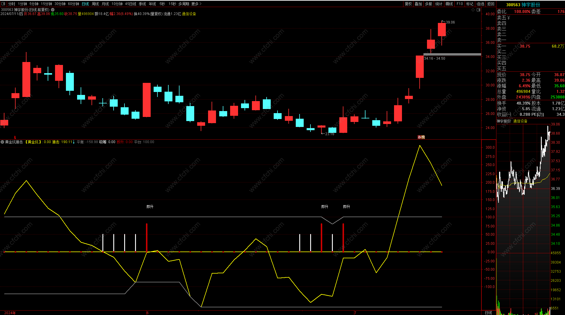 (通达信黄金坑猎击无未来指标 心理趋势线、追涨停板 源码附图)