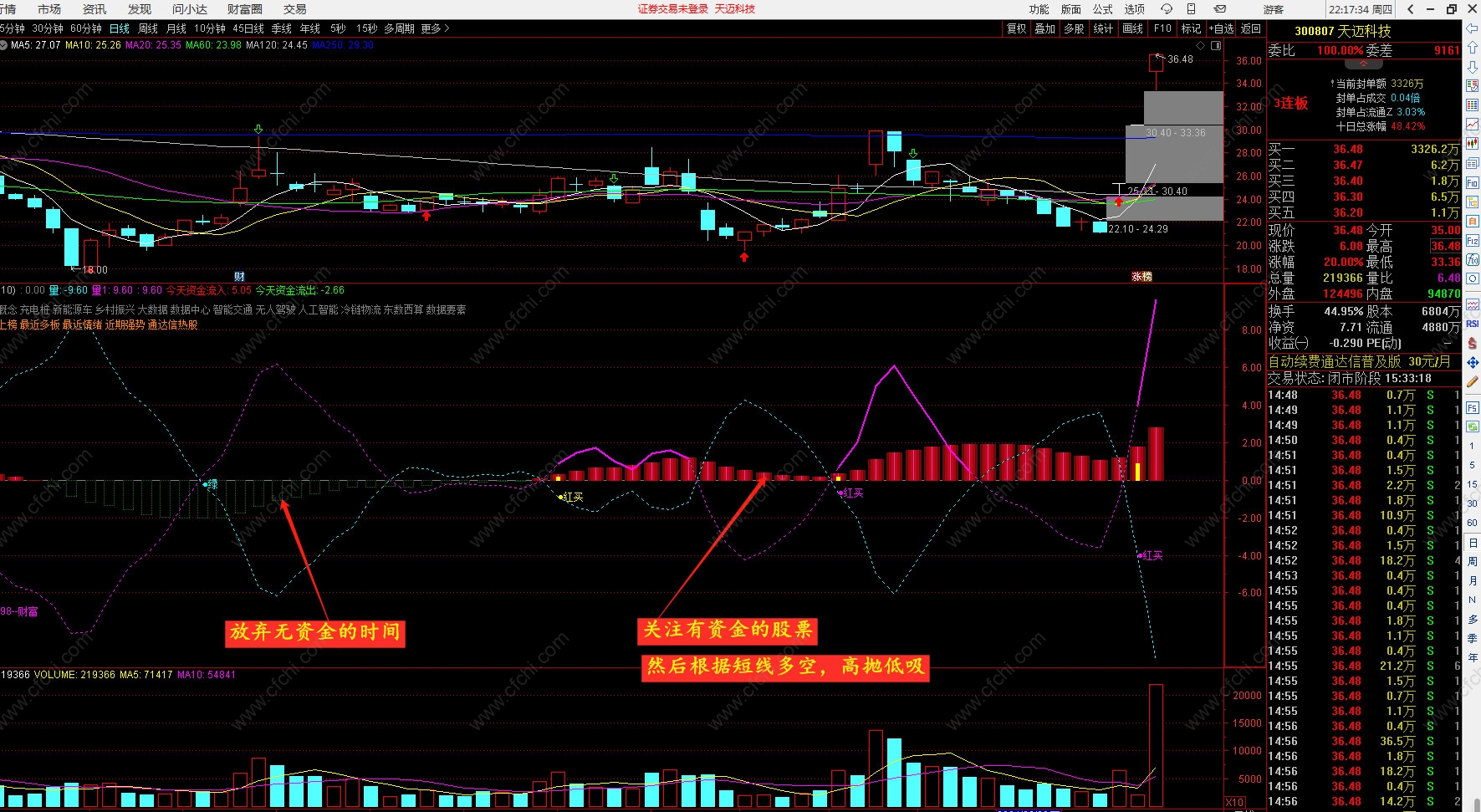 随意打开一个股票的走势,如果还没有资金参与,尽量放弃,盲目抄底,时间很长,我们推荐本来就有资金参与的股票,然后进行多空操作,方法简单,成功率高。小小指标,包括很多技术核心,不用你试错,按原理操作即可。