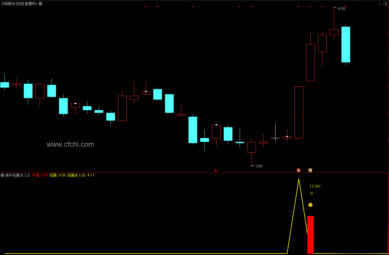 通达信【疯牛狂飙】之副图选股预警今买明卖尾盘模式 无未来 超短无敌溢价!源码指标分享