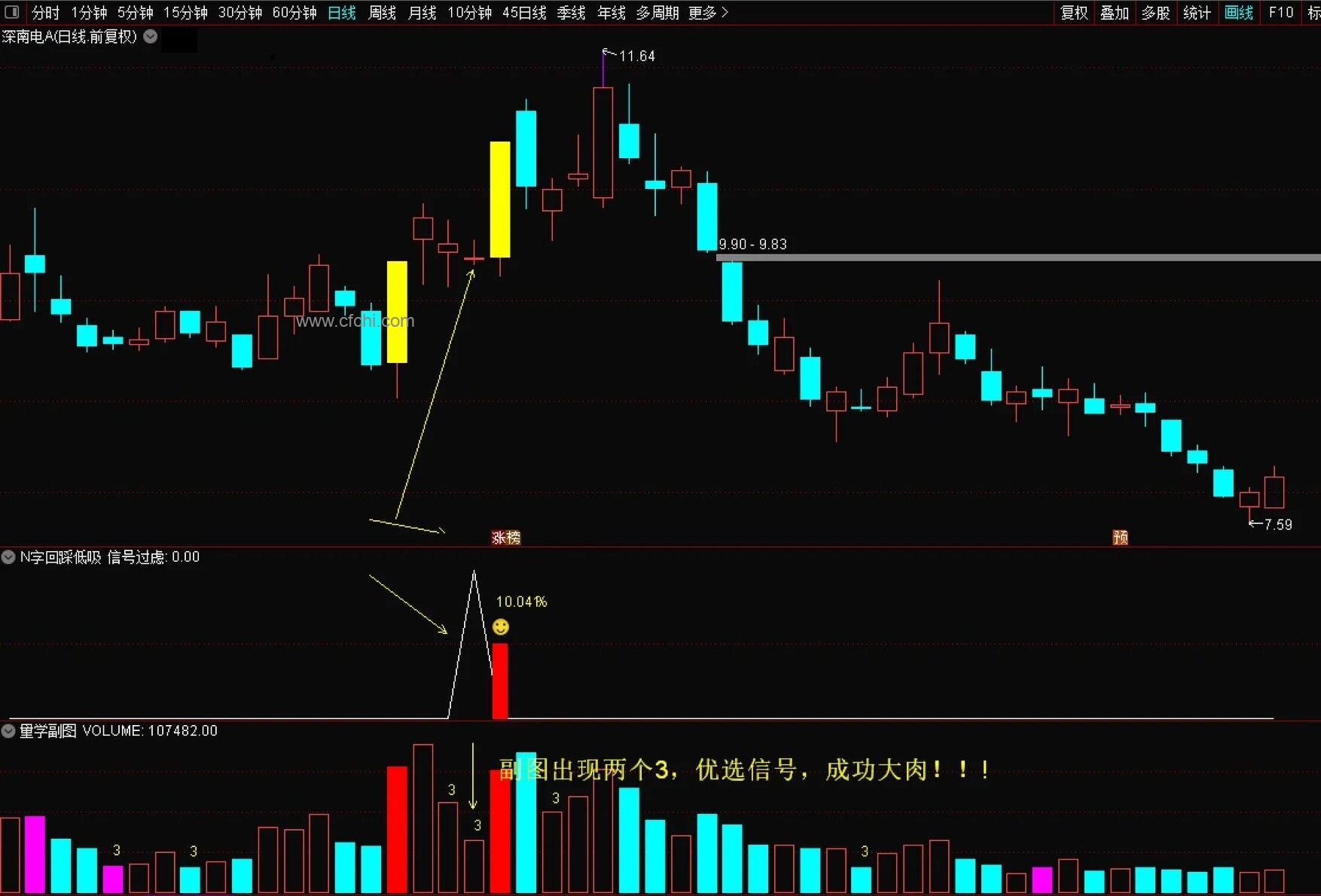 通达信N字回踩低吸副图选股指标,票少而精,今买明卖!源码分享