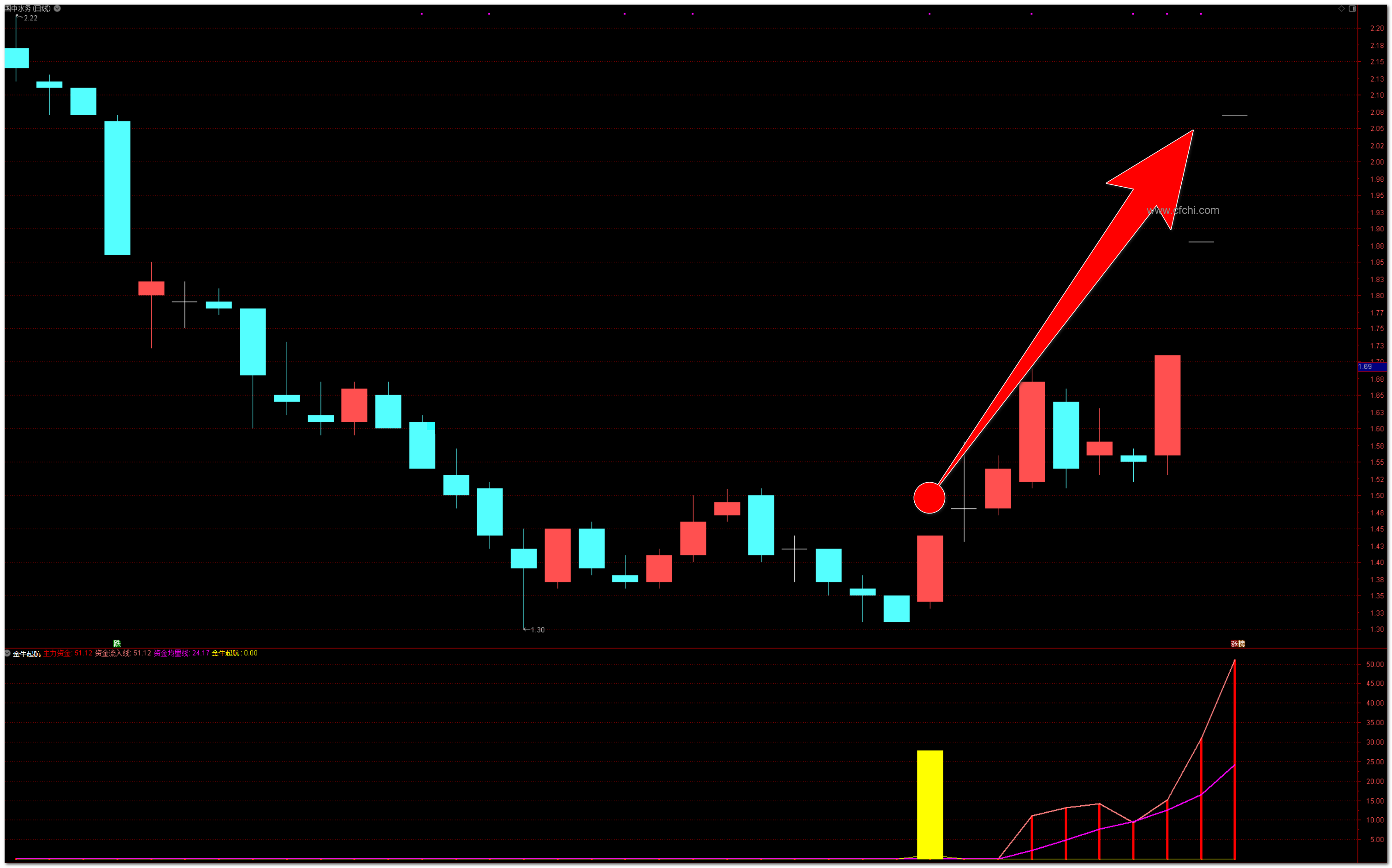 利用资金均量线: 结合资金均量线的变化,判断市场的整体资金流动趋势。当均量线上升时,市场资金流动积极,适合寻找买入机会。
