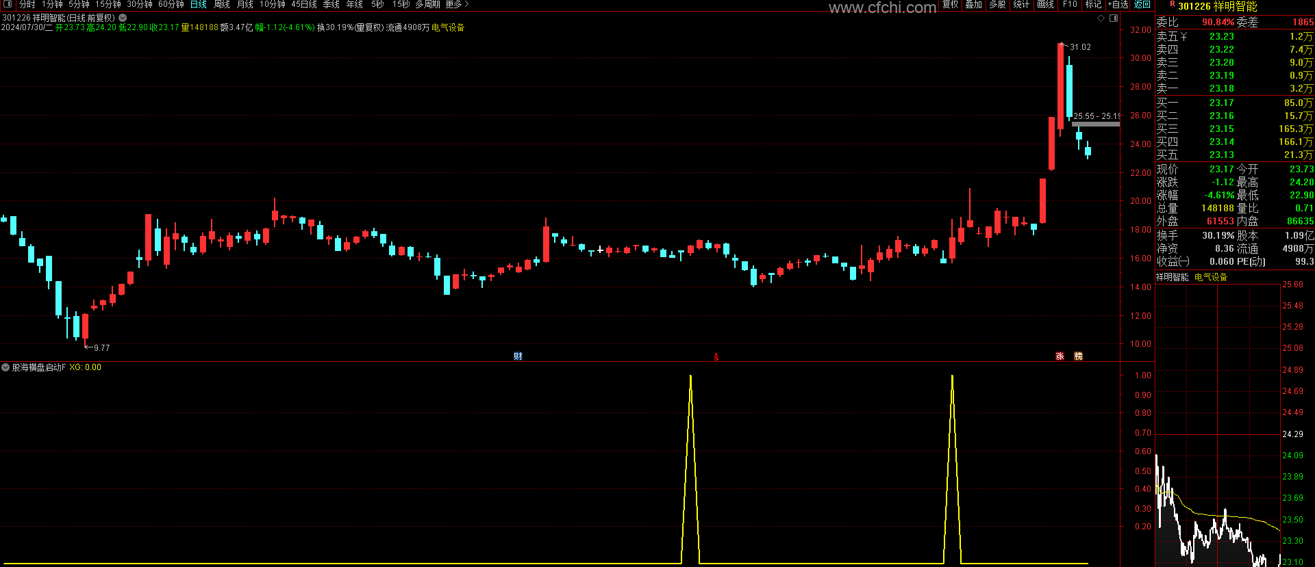 通达信〖AI量化分时〗主副图分时指标,捕捉股票在分时图上的强势启动信号,源码