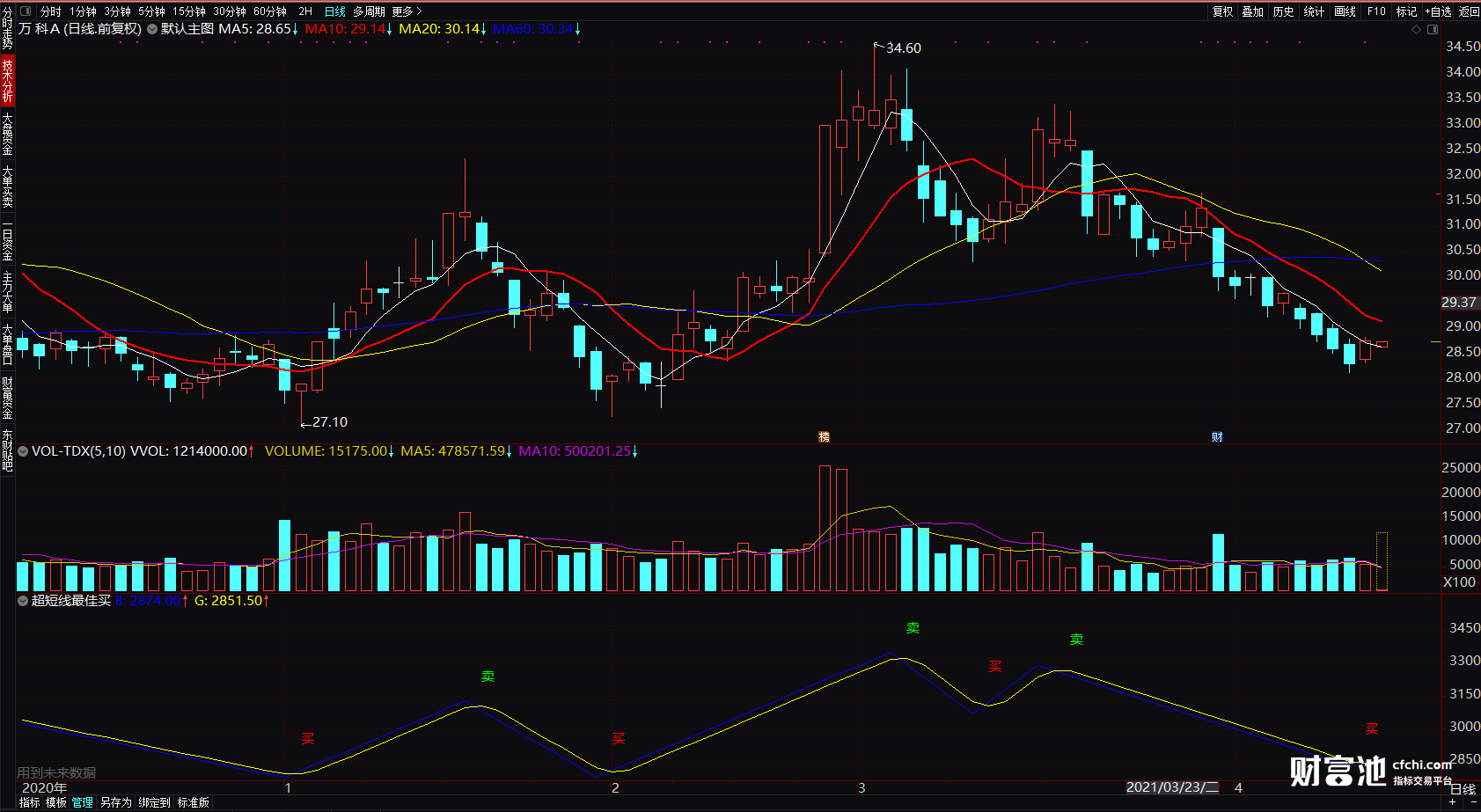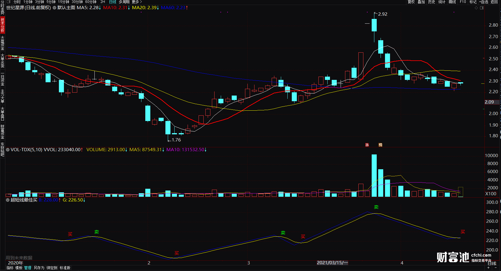 (超短线最佳买卖点 通达信超短宝指标公式 明确买卖点指标 副图)