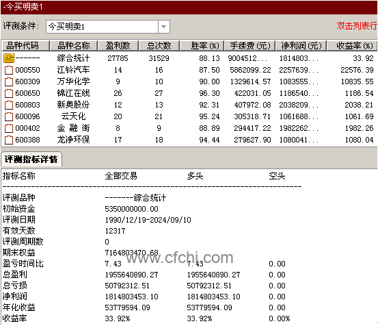 34年90%胜率【今买明卖1】副图指标,无未来,不漂移。【今买明卖】为系列指标分开售卖,使用通达信软件,系列里共分为【今买明卖】1,2,3,4四个指标,全部源码售卖,方便股友研究学习。所有指标不含未来,信号不漂移,购买后可做沙盘推演,所有数据完全真实,准确,不同版本软件数据可能略有偏差,安装后请先下载全部A股1990-2024年全部日线数据后再进行回测。