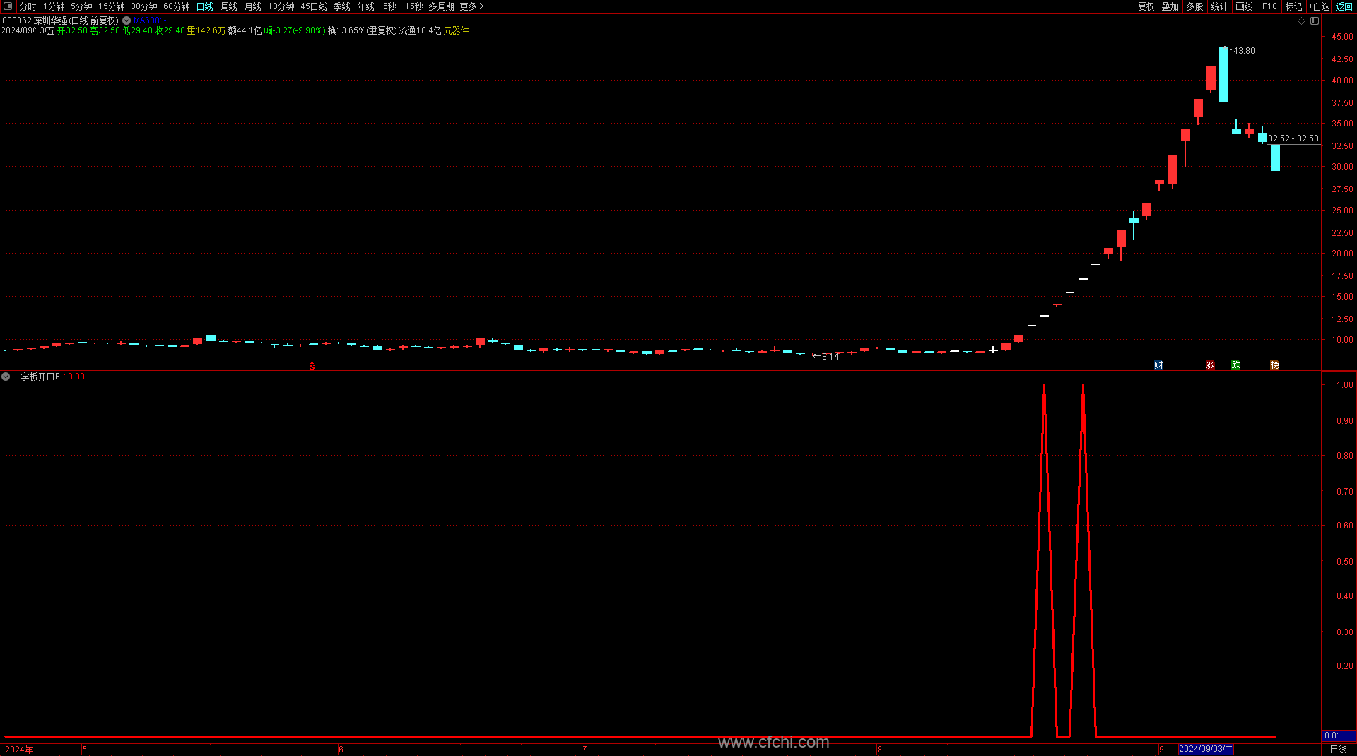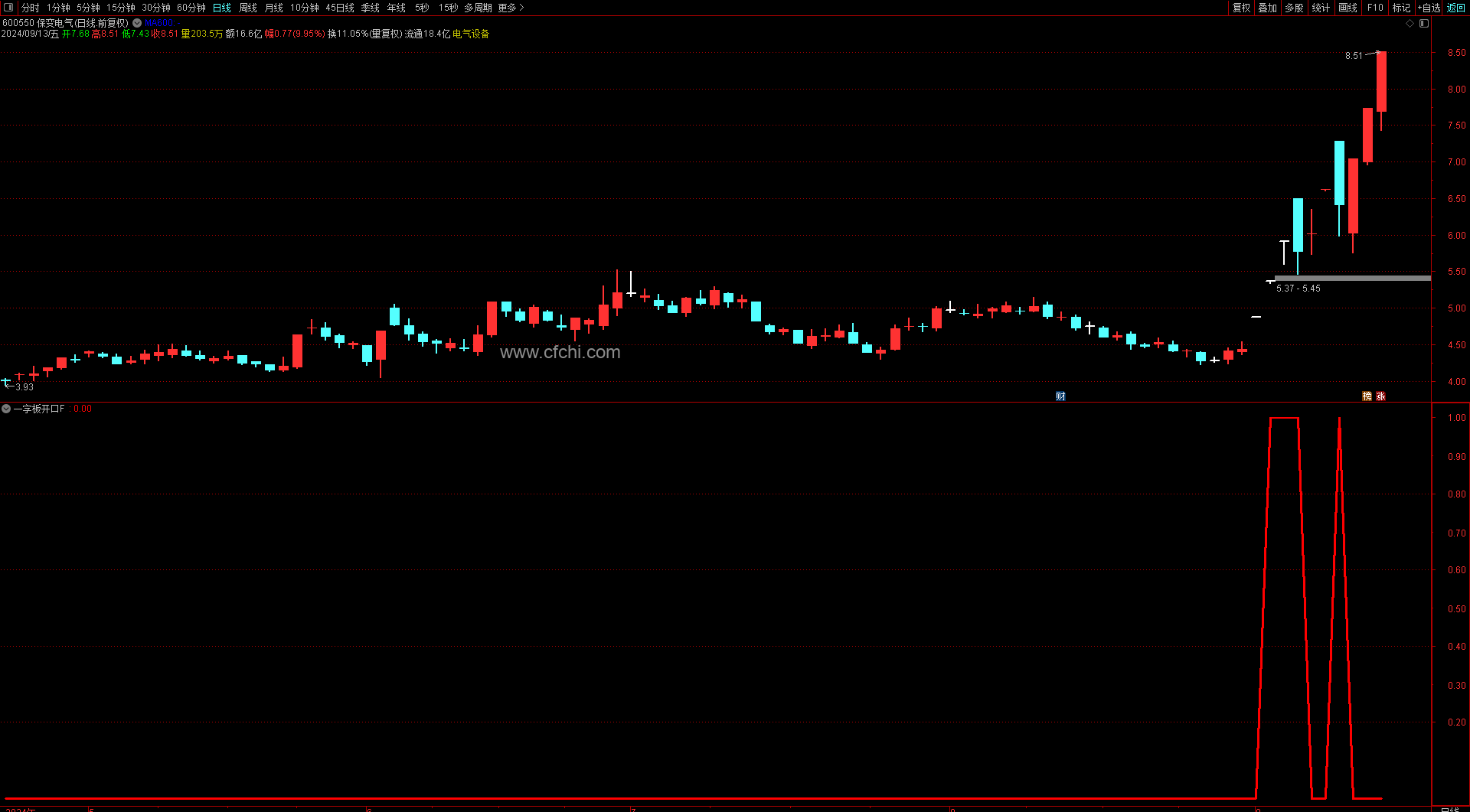 (金典通达信【一字板开口】专为在强势市场中捕获开板股而设计 副图/选股 源码)