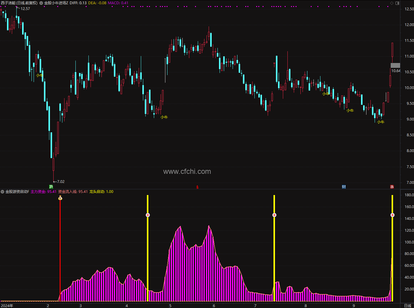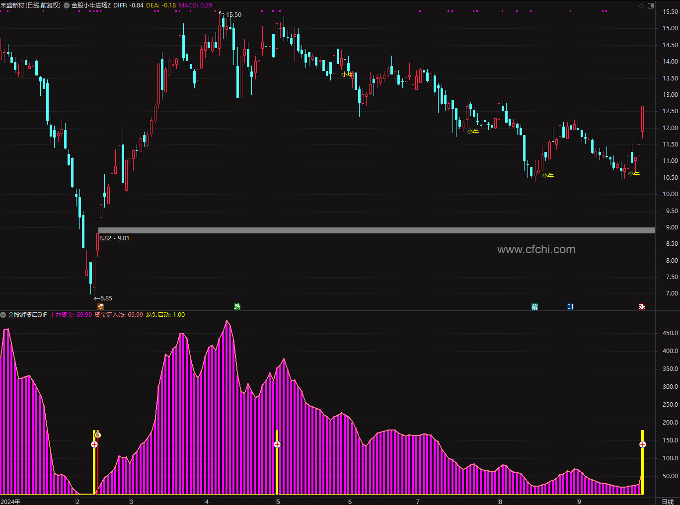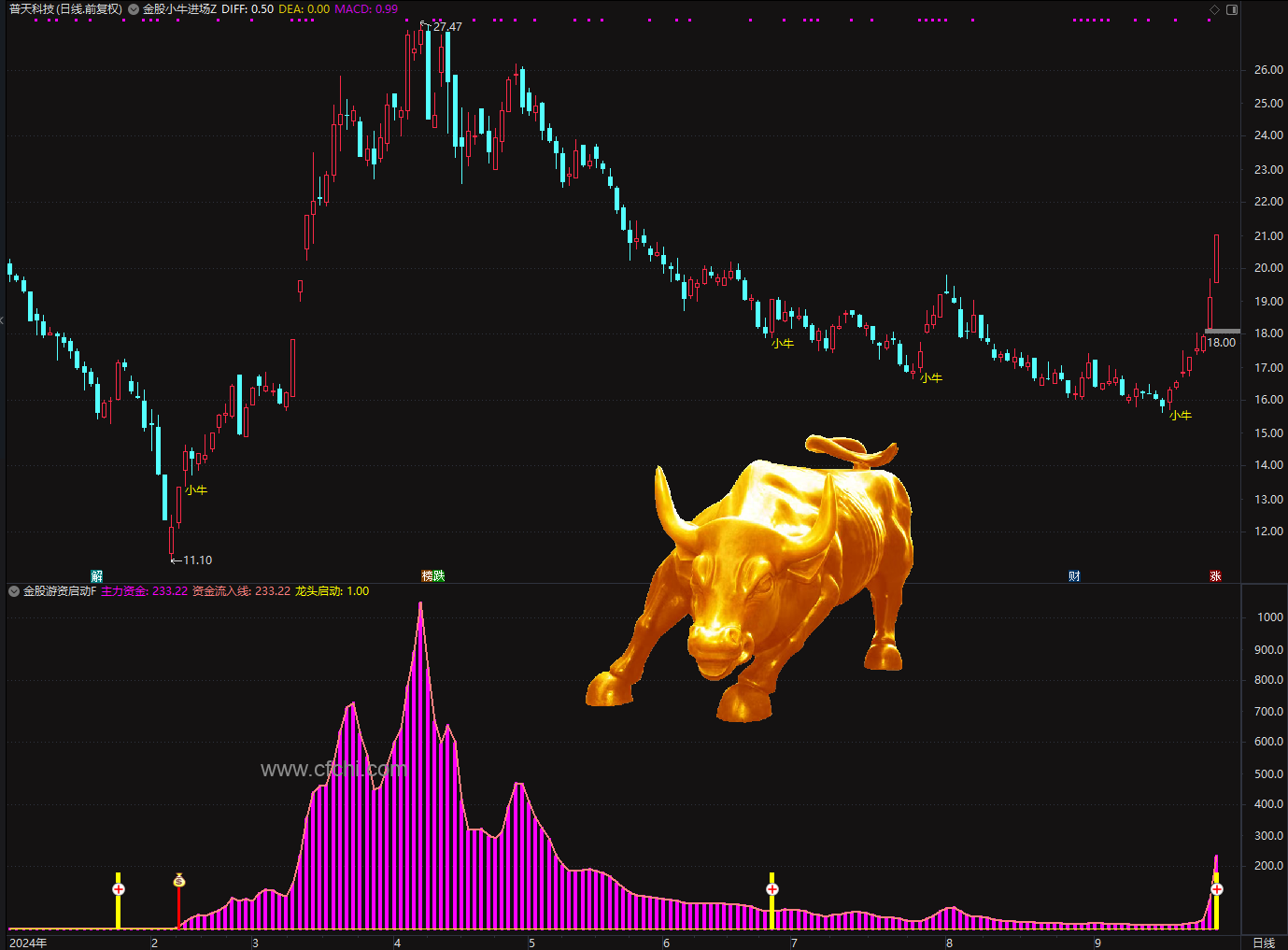 (金典通达信游资资金启动副图指标 资金突破启动擒龙信号一目了然)