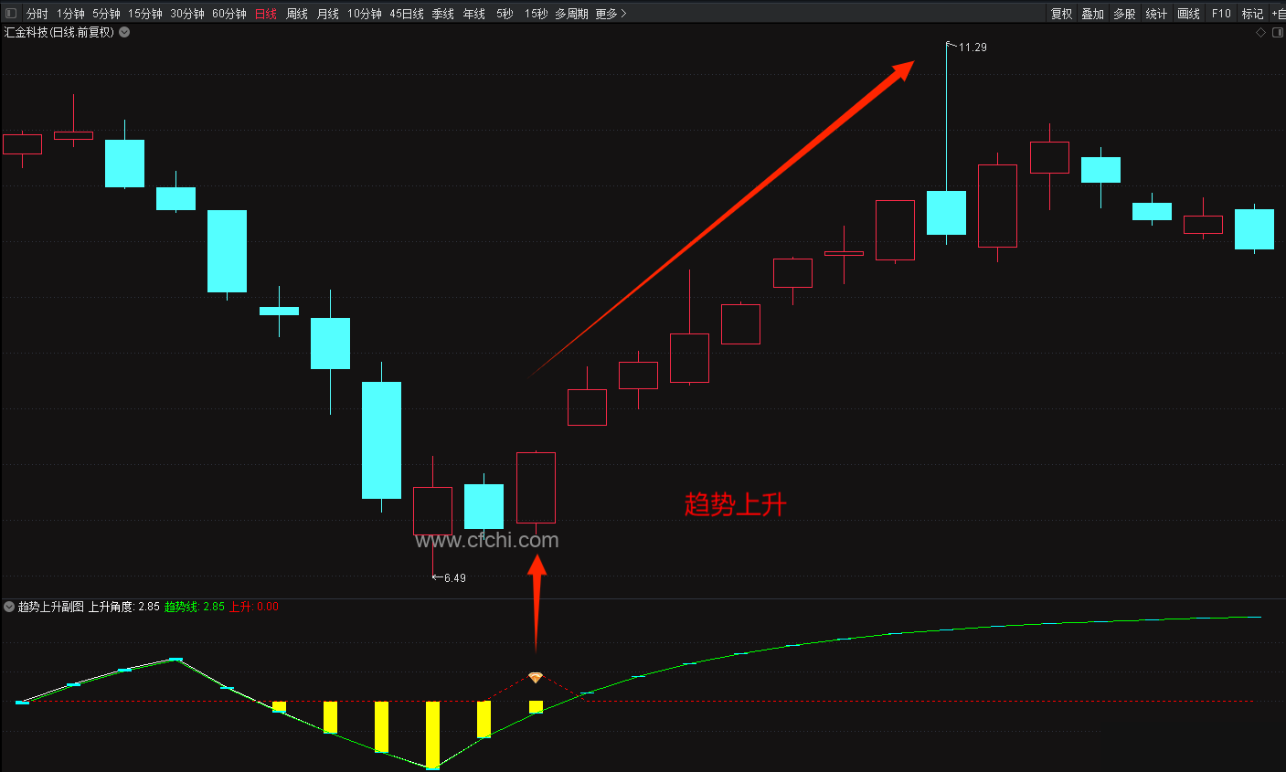 (【通达信】趋势上升副图指标公式,抄底胜率高,源码分享)