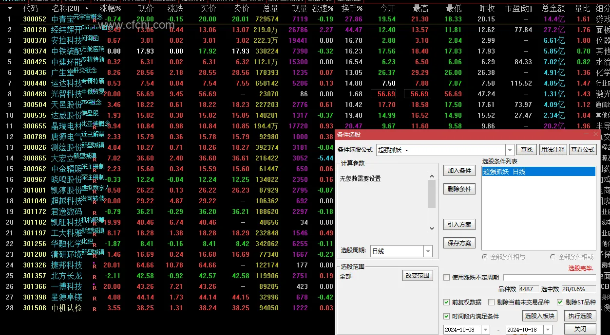 (【超强抓妖】通达信超强抓妖副图选股指标,近期光智科技 大宏利 捷邦科技 新动力 指南针有信号)