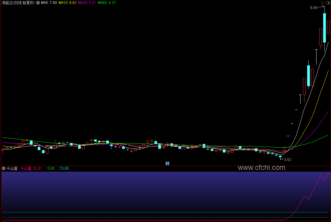 日线图上,向上突破不久,该指标即破400,并站稳400以上,是大牛股的共同特征,都可以积极跟进