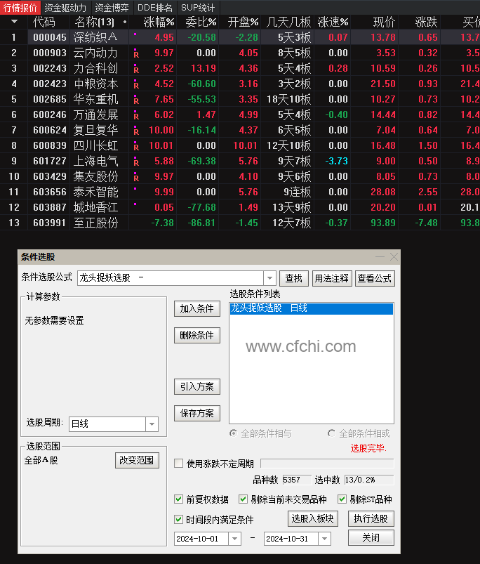 9点26以后选股,因涨幅设置3%到6%,出票不多,10月份共出票13支!