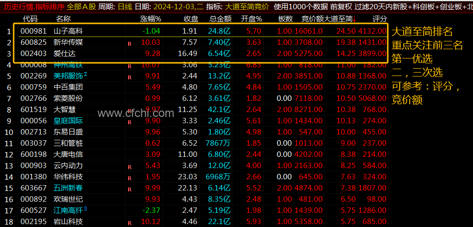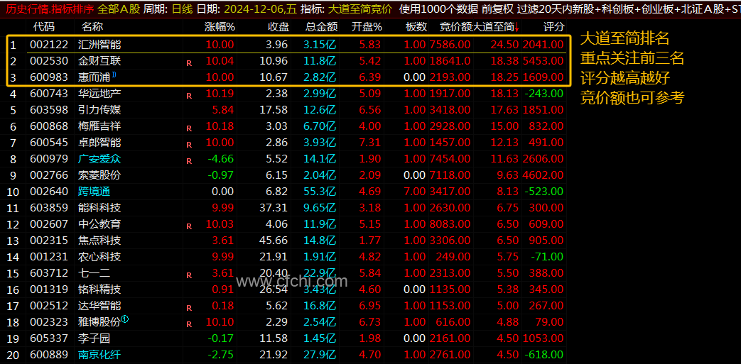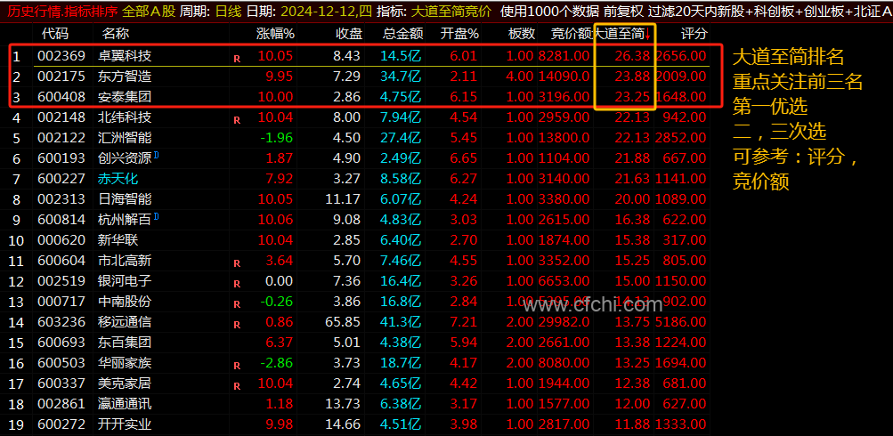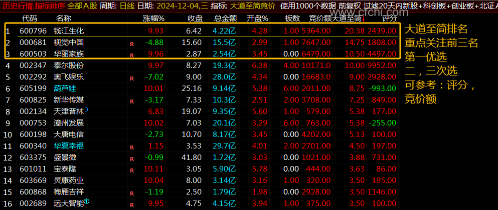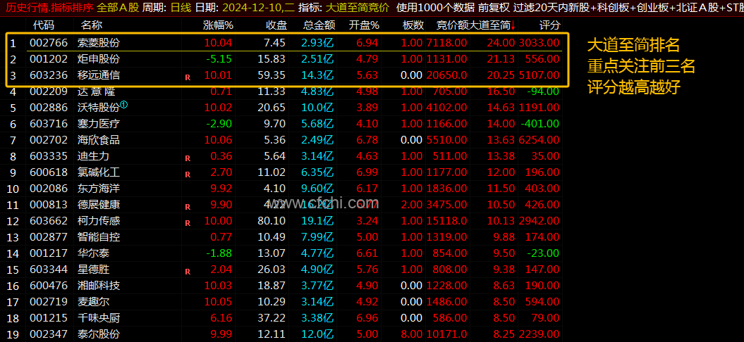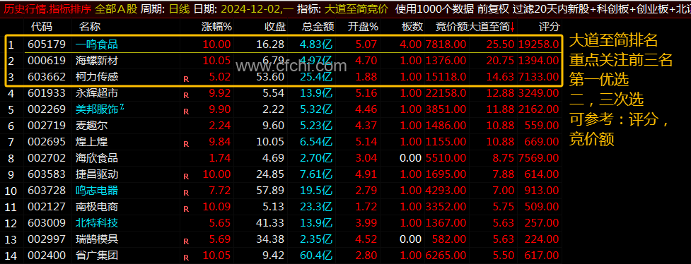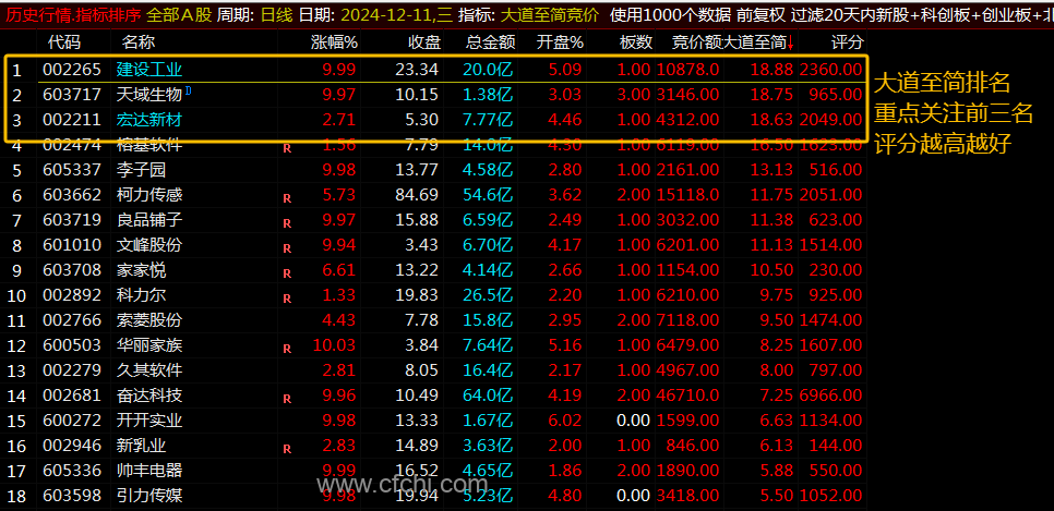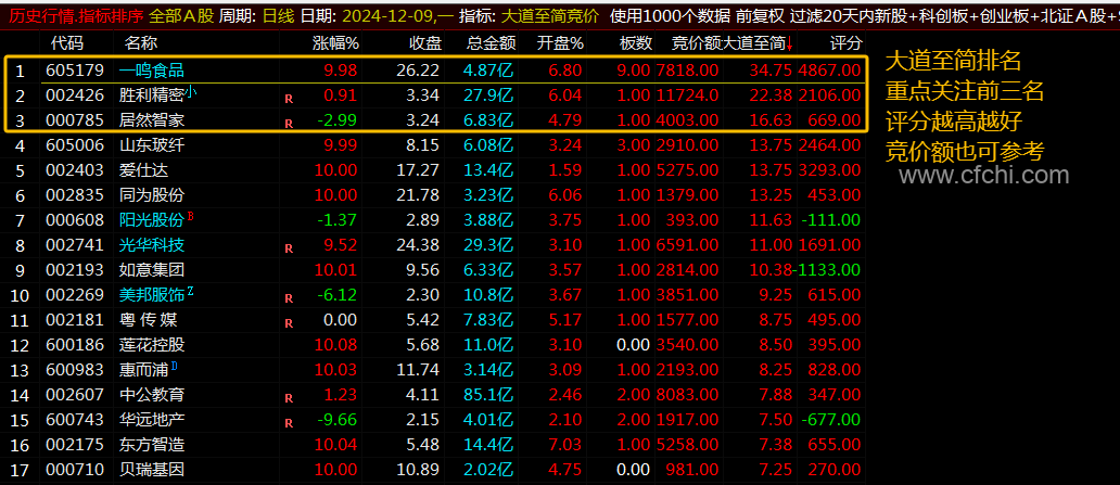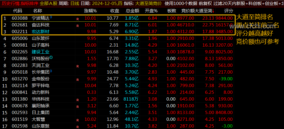 (通达信【大道至简竞价】指标1竞价排序1预警选股大道至简竞价一进二抓龙头胜率高)