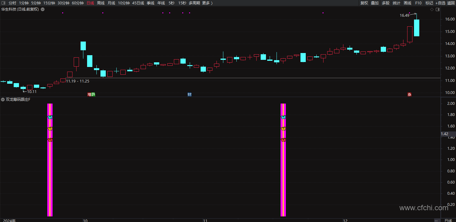 (通达信【双龙筹码跟庄】副图/选股 跟庄突破捉龙头主升浪信号一目了然)