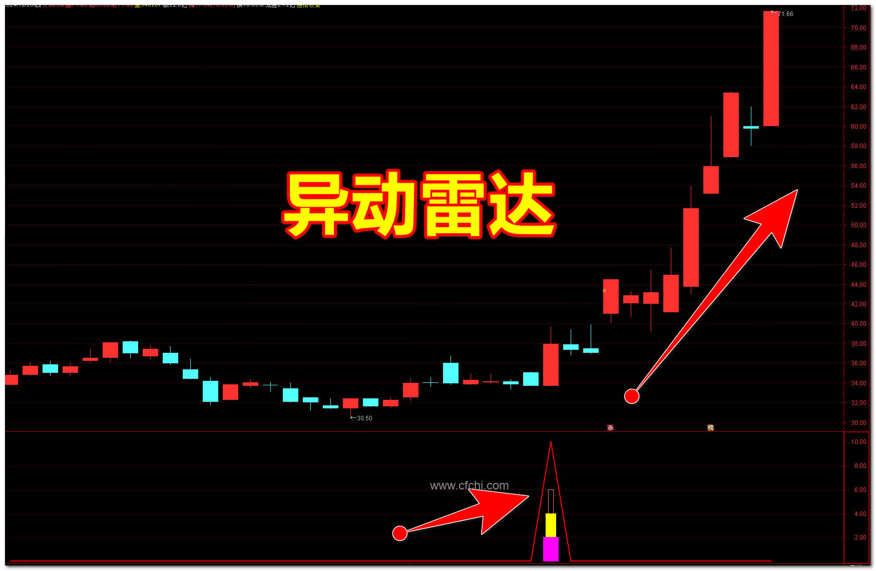信号筛选:当系统识别到上述条件时,便会通过副图信号显示异动雷达。