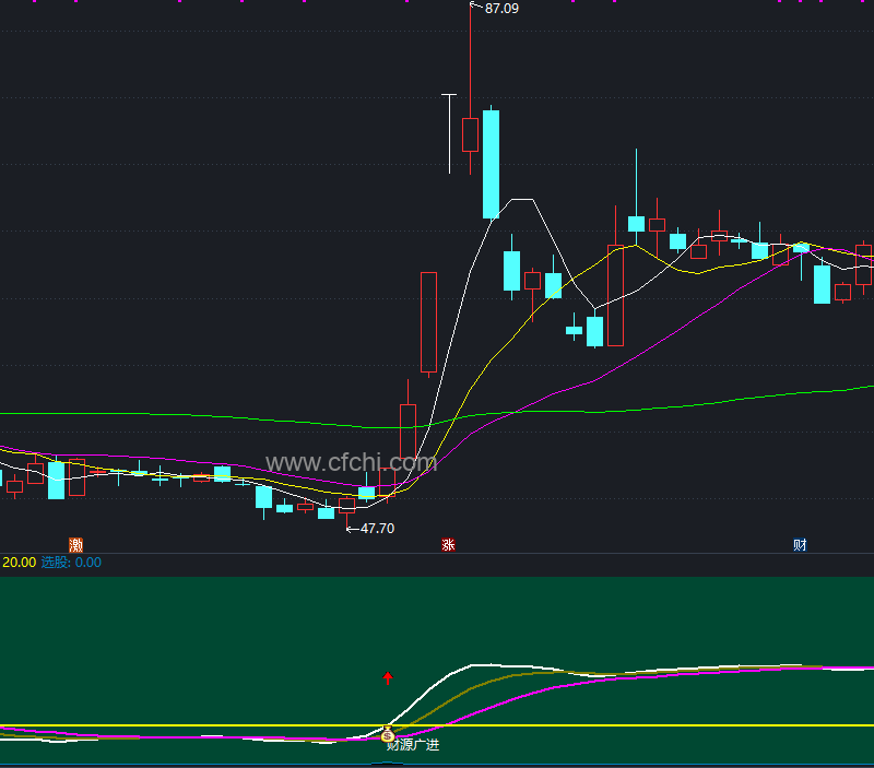 • 当神仙线上穿20时,触发选股信号,可能是一个买入的机会。
