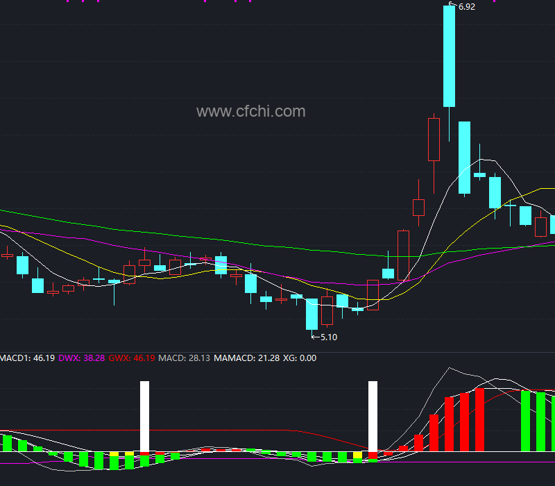 • DWX和GWX:DWX是20日内MACD1的最低值,GWX是20日内MAMACD1的最高值。