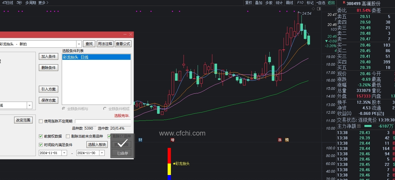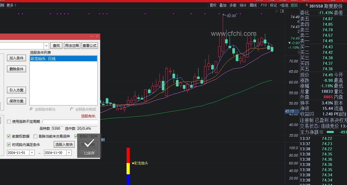 (通达信2025新版原创指标 《彩龙抬头》幅图/选股指标强势回调 可盘中预警 可选股 胜率高)