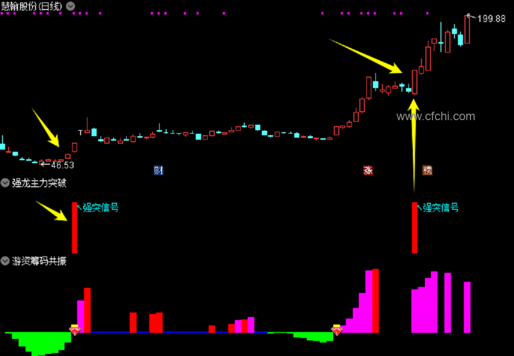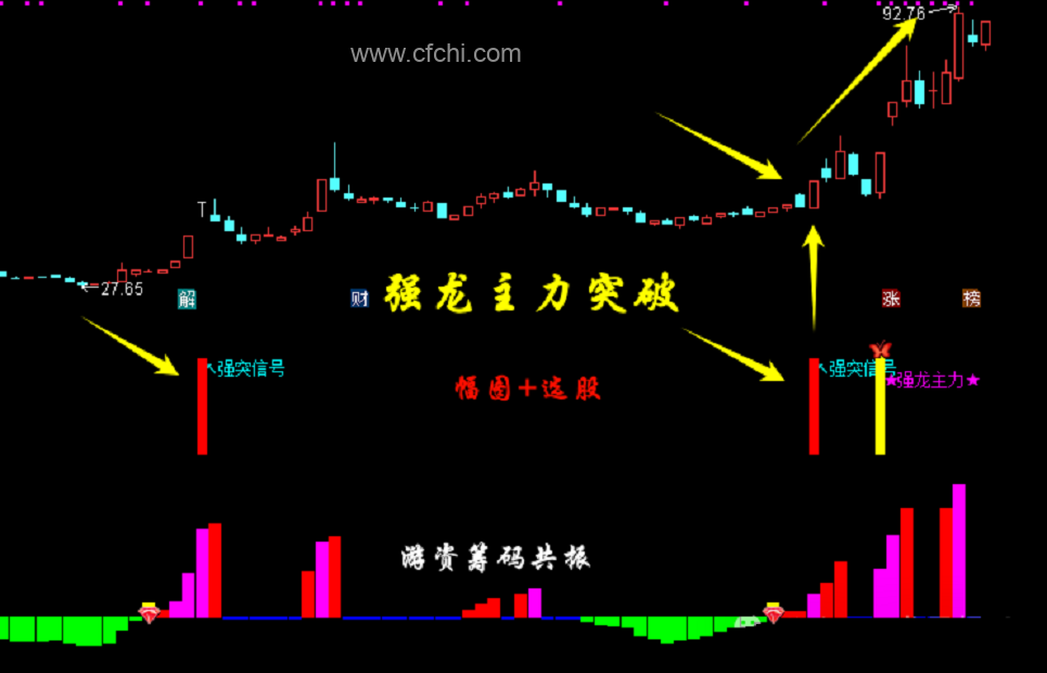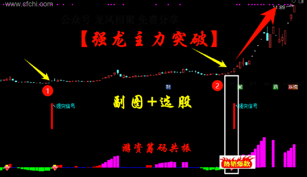 1.强突信号、强龙主力起爆信号,强龙主力信号比强突信号更强,包含横盘突破与下跌突破。