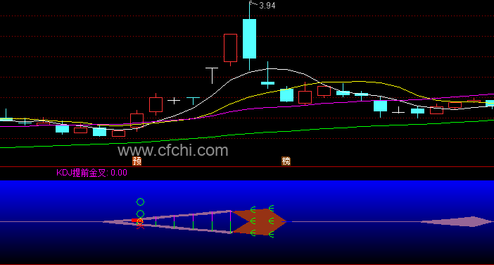 • KDJ提前金叉:当KDJ提前金叉时,表示市场可能迎来上涨行情。此时,在0位置书写黄色文字,在-2位置书写红色文字,提示投资者关注买入机会。