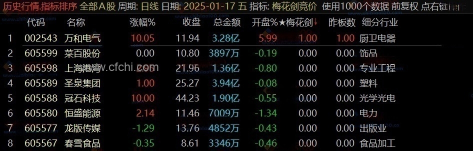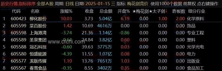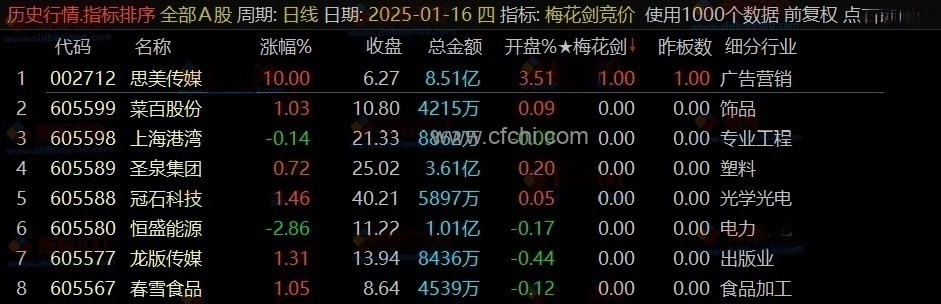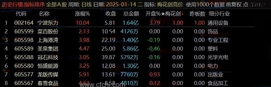 (通达信《梅花剑+太子剑》早盘竞价排序,源码开放,永久版!)