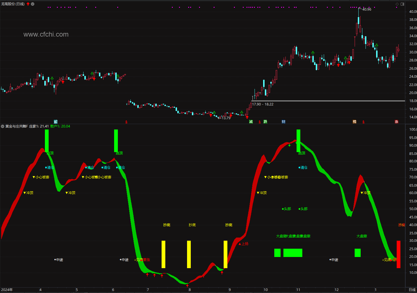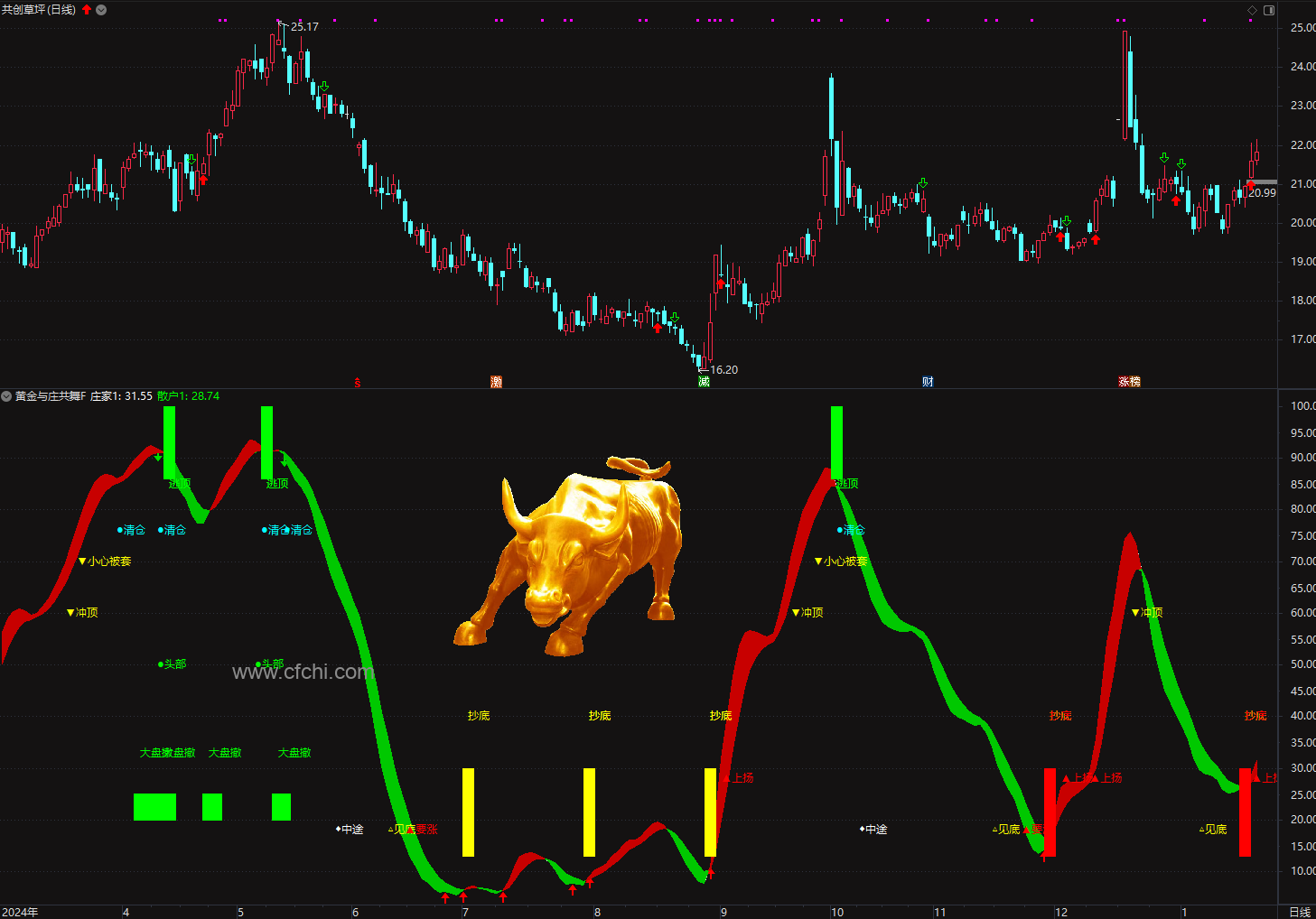 通达信【与庄共舞黄金顶底】1副图6选股指标源码 助你股海擒牛