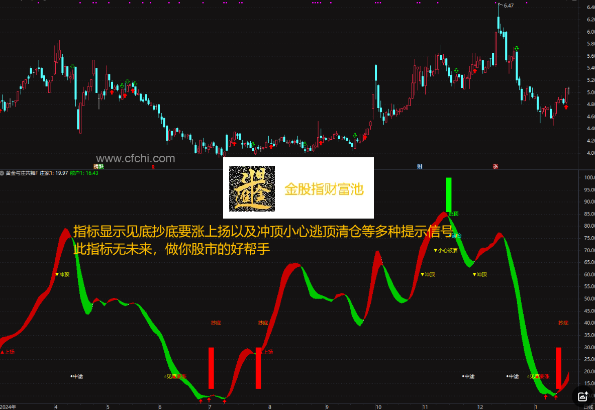 (通达信【与庄共舞黄金顶底】1副图6选股指标源码 助你股海擒牛 无未来手机电脑可用)