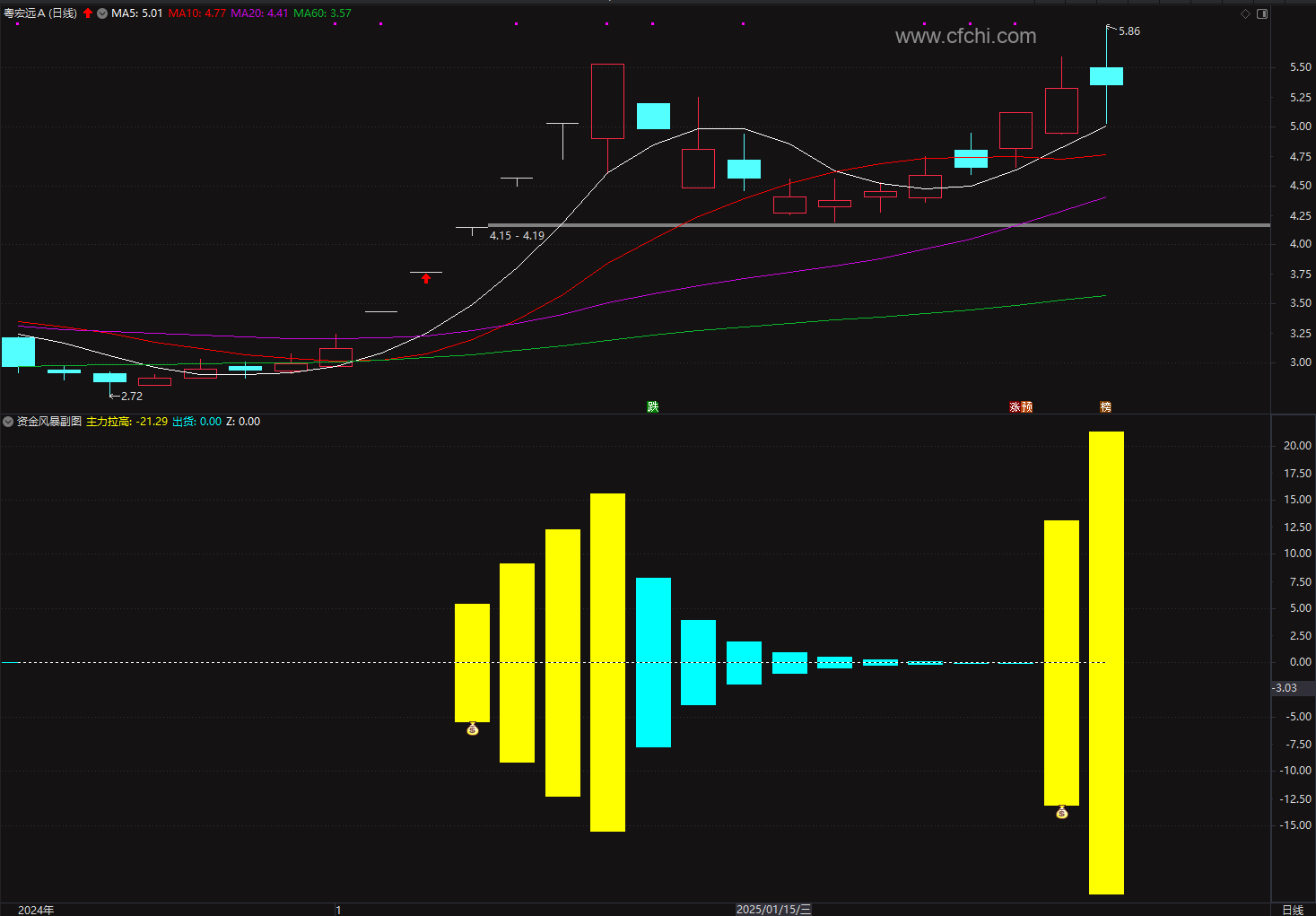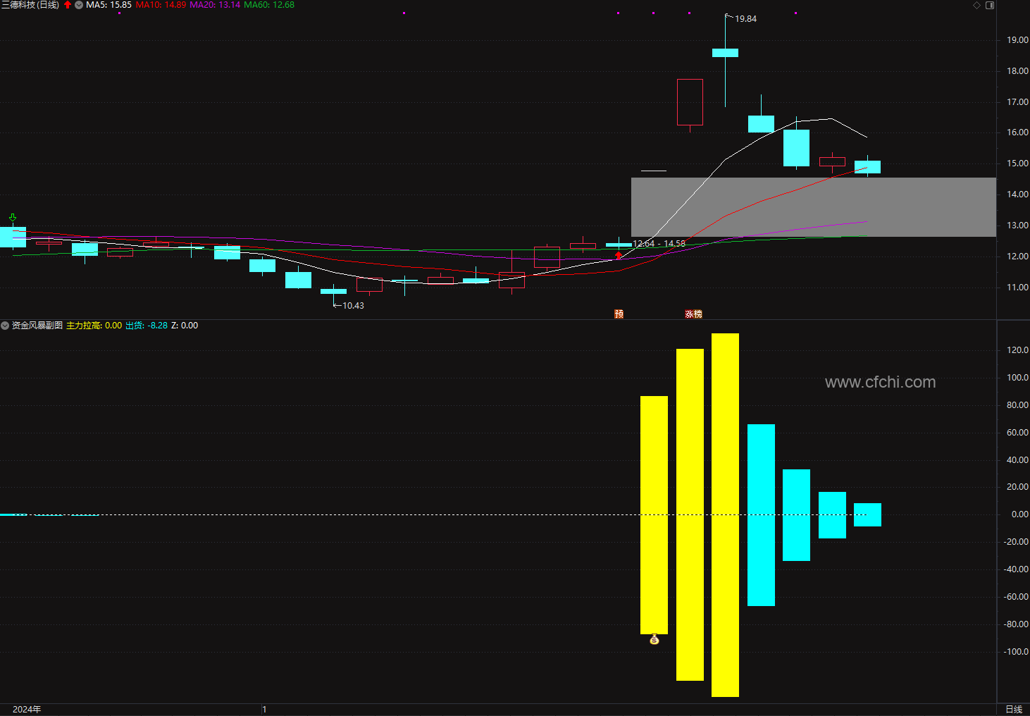 (通达信【资金风暴】副图选股公式 捕捉主力拉升 )