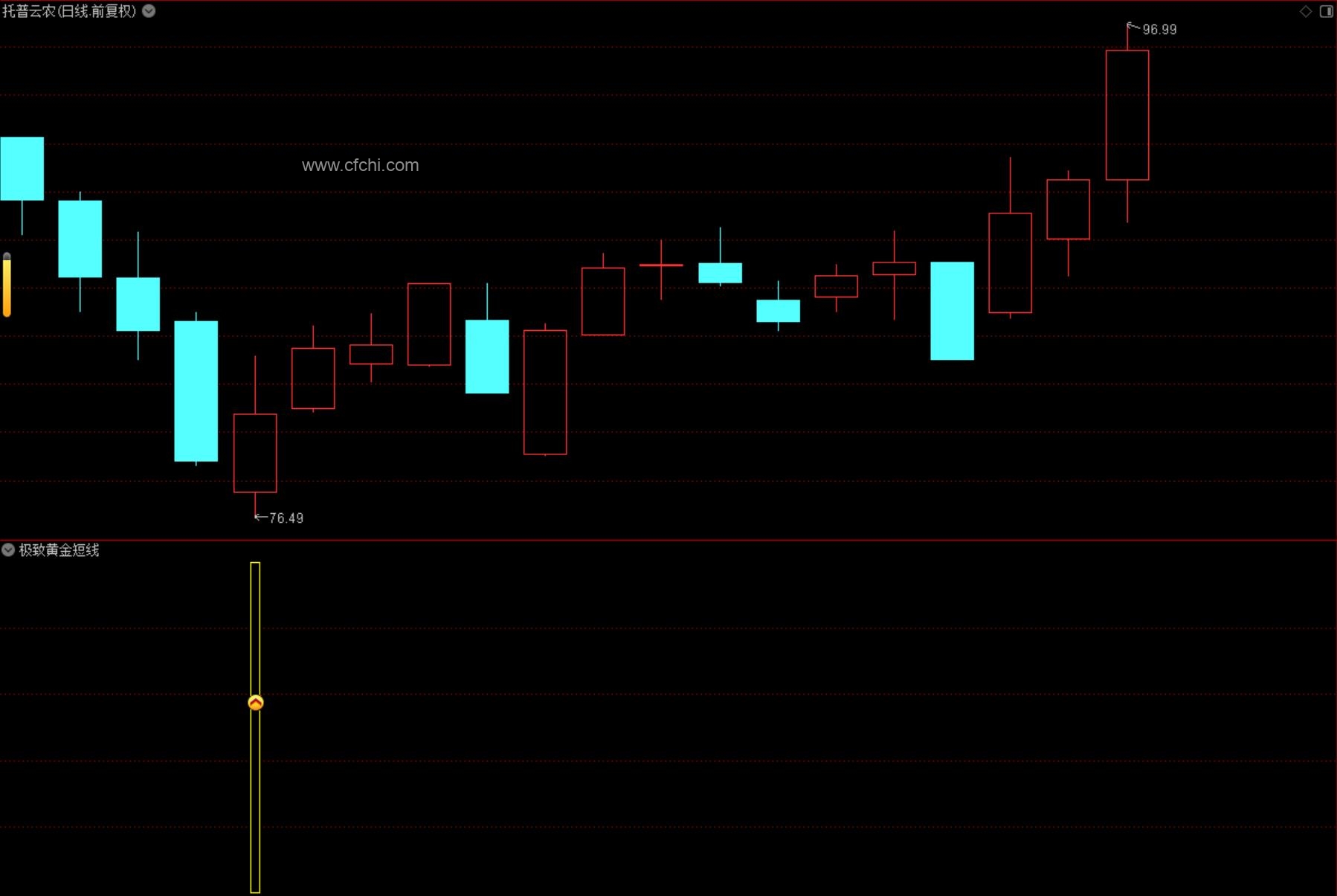 通达信【终极超短】副图/选股 盈利系数和盈亏比值最大化的巅峰之作无未来,手机电脑通用 指标包括一附图,一选股指标,手机电脑通用,信号供参考 评价任何指标好坏的标准都不能避开“盈利系数和盈亏比值” 这两个关键系数; 盈利系数,是可赢利交易次数减可亏损次数后,占总交易次数的比值,越高说明赢利机会越大; 平均盈亏比值,是能够赚多少和能够亏多少的对比,数值低代表碰到亏损,亏损幅度会很大; 近一年来的信号点充足,胜率高达91%以上,这一数据足以让众多投资者为之侧目。 苦寻觅,千百度,终于找到梦中指标:终极超短 要求:当天尾买,第二天冲高卖,无未来。 |