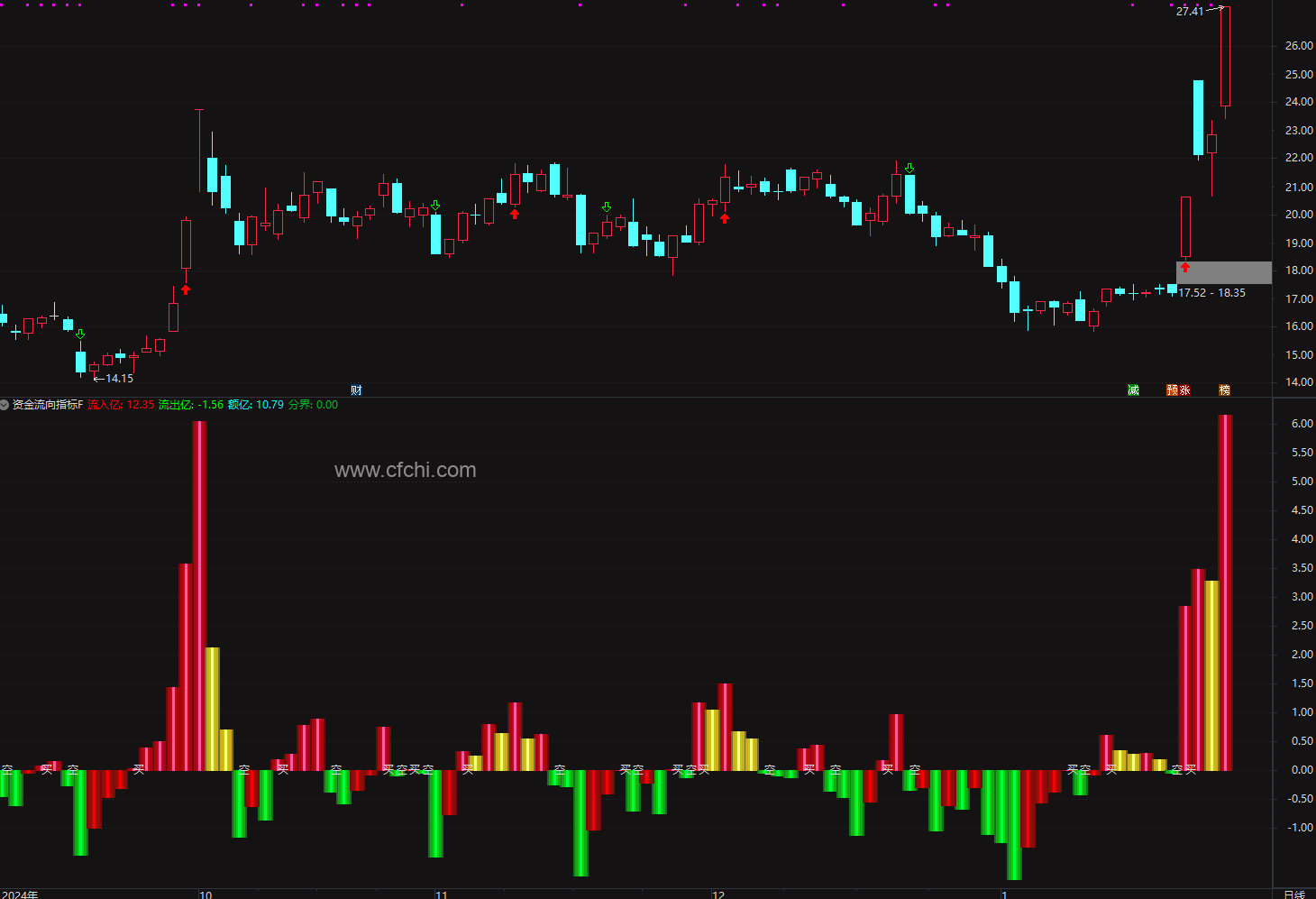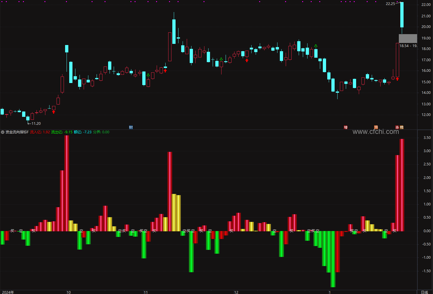 (通达信资金流向指标 无未来 供参考,副图给出了买空信号提示)