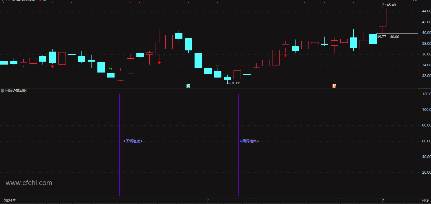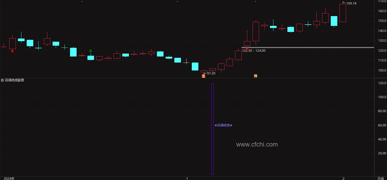 (通达信【回调绝底】副图/选股指标 抓反转起涨拉板大牛)