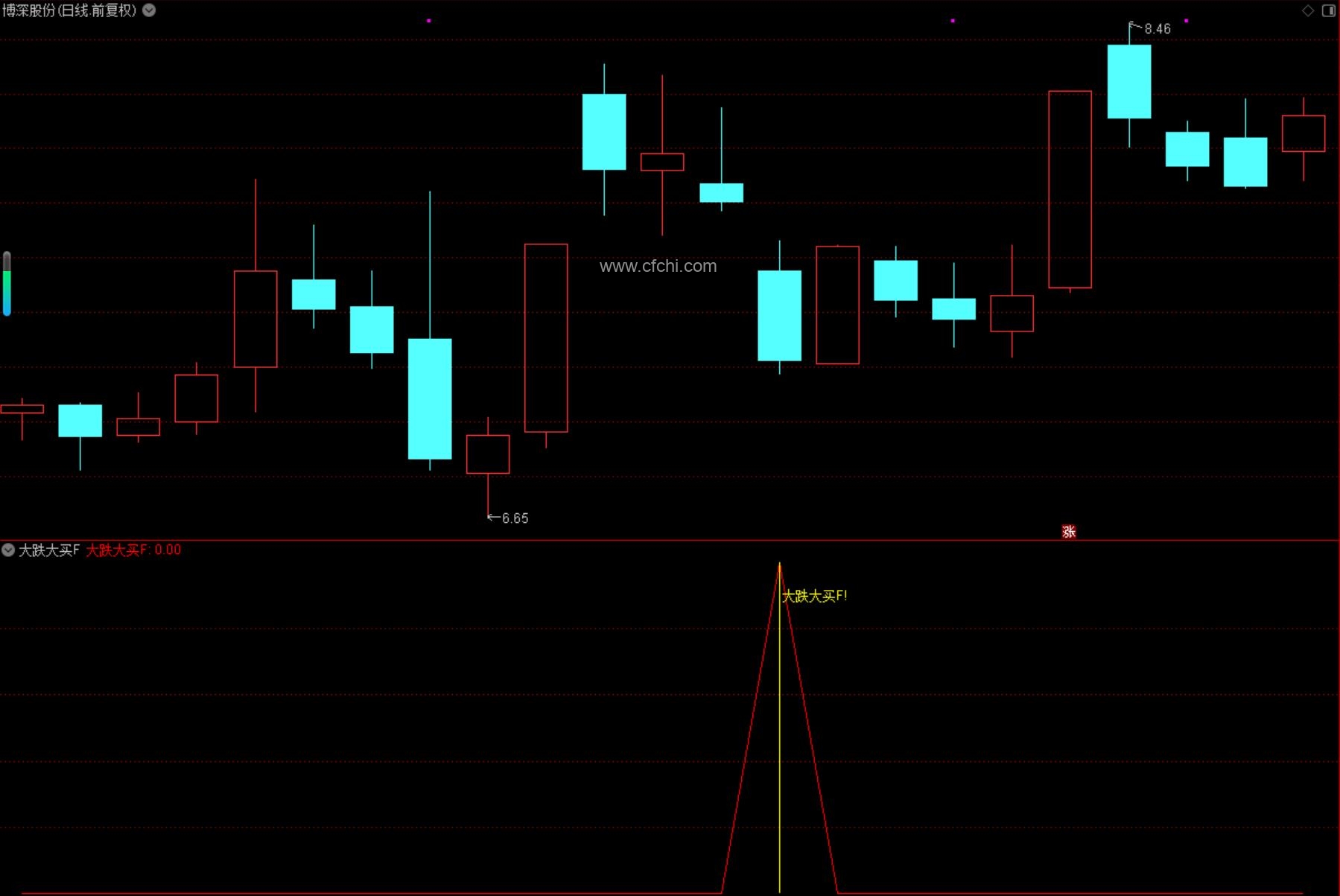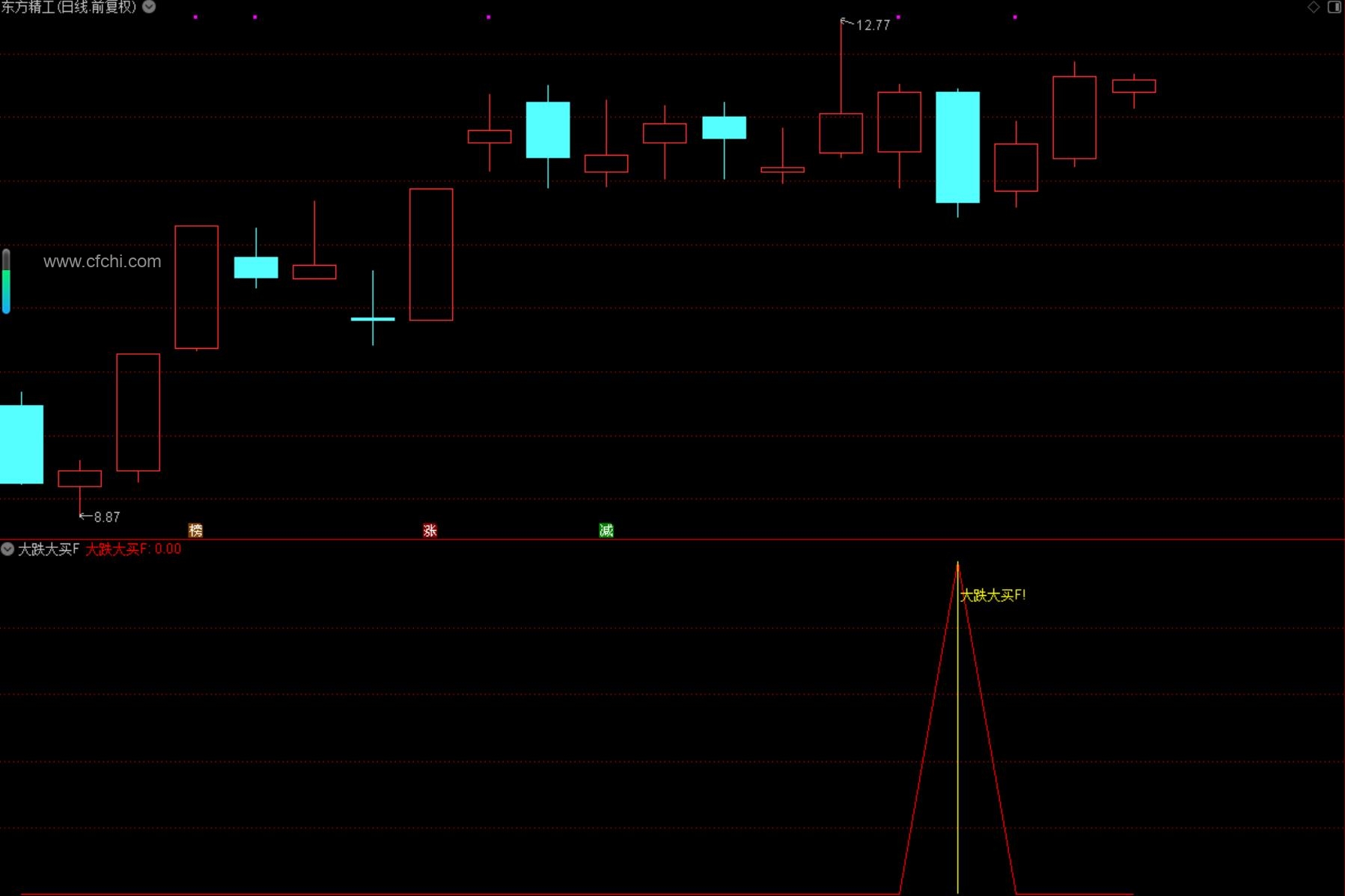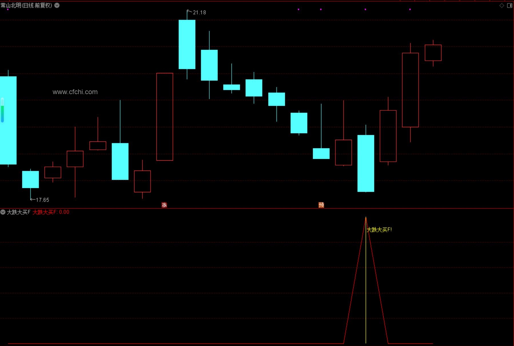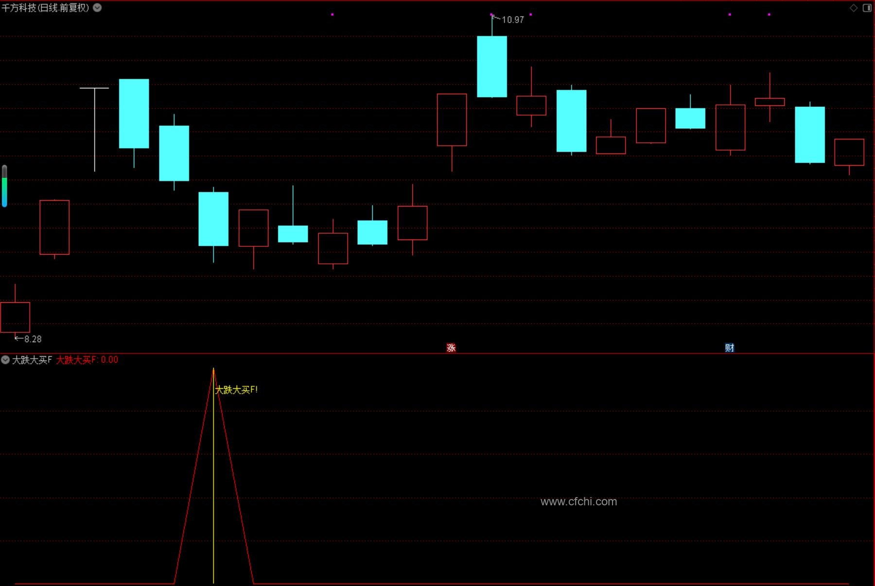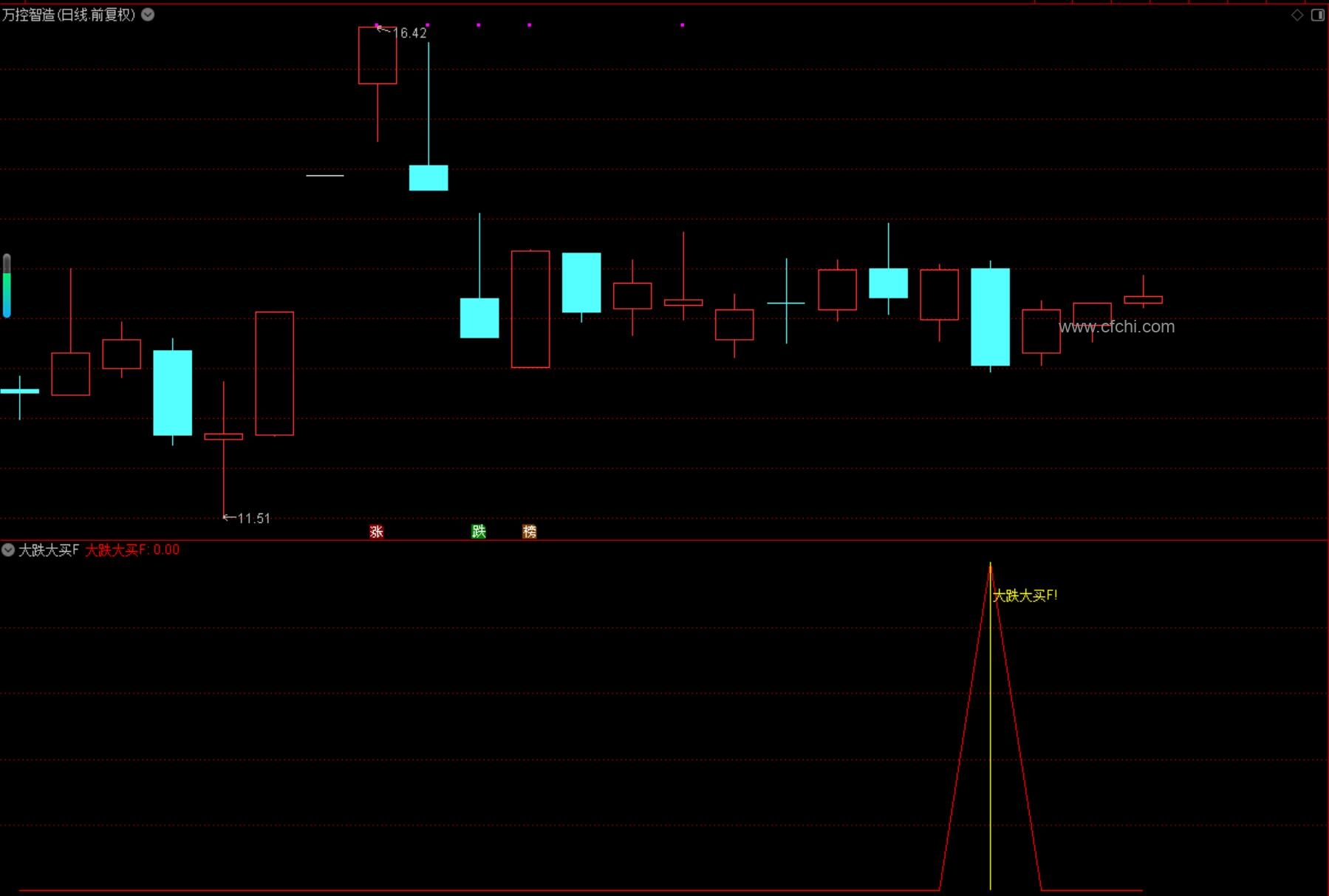 (通达信【尾盘大跌大买】指标,副图、选股,尾买大跌捡筹码思路,无未来函数,手机电脑通达信通用)
