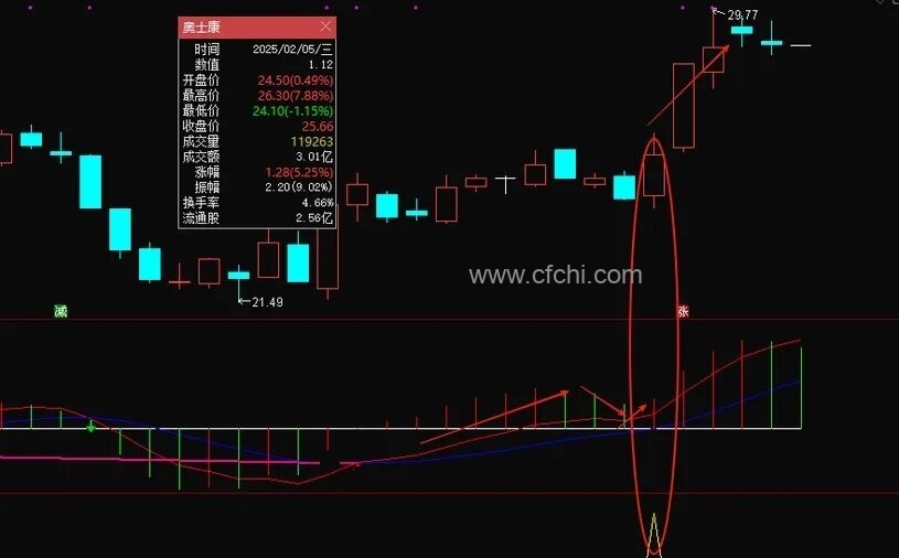 MACD金叉后回调,再次开口张开,两条线不产生死叉,金叉前后有涨停板出现,开口再次张开时进场,最近很牛!