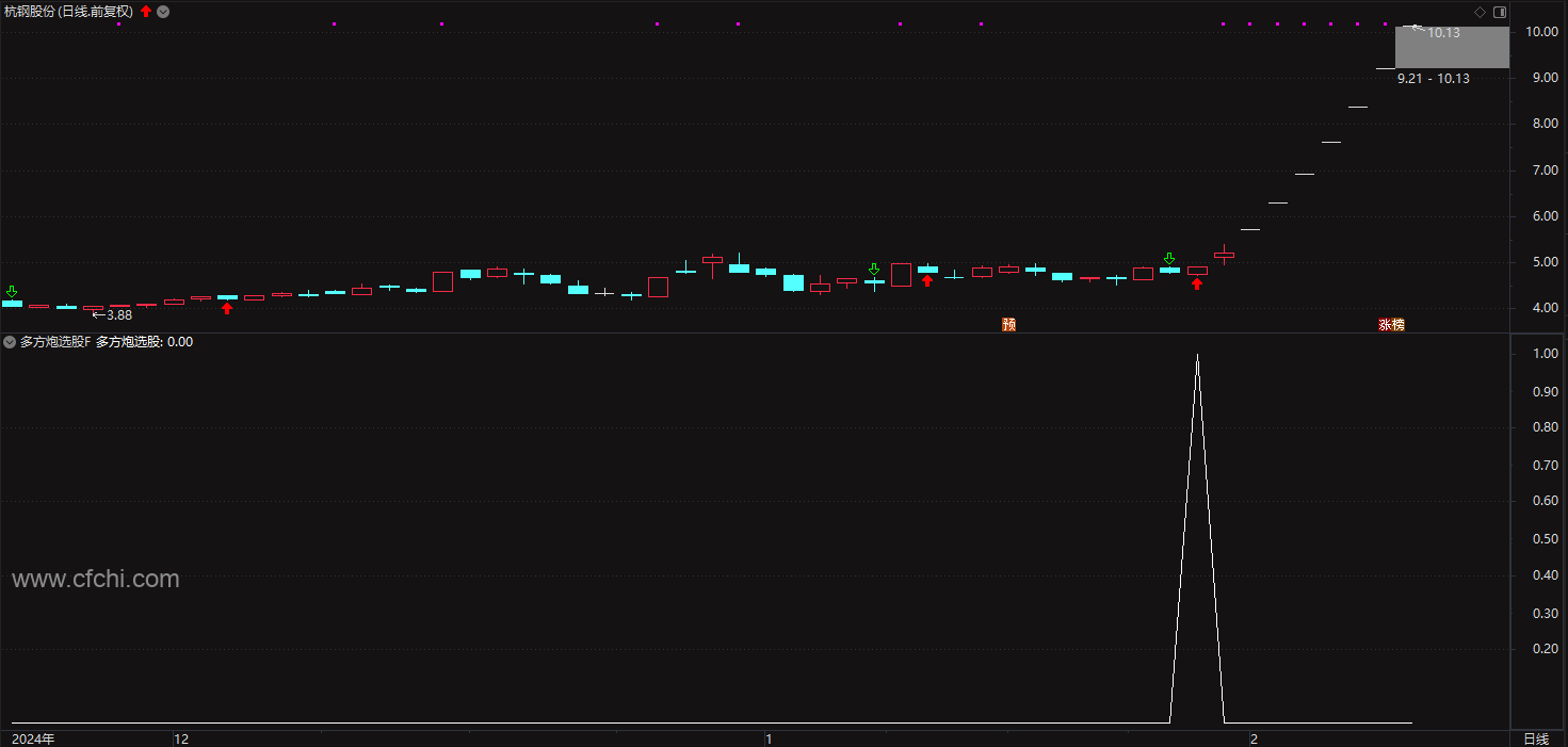财富池指标公式网(www.cfchi.com)提醒您:指标公式是通过数学逻辑角度编写而来,仅是股票分析环节中的一个辅助工具,对股票选股效率和分析便捷上起到一定的作用,股市是具有不确定性和不可预测性的,请正常对待和使用指标公式!