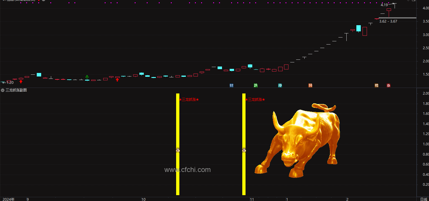(通达信【三龙抓涨】副图/选股 动能判断底部识别 波段思维)