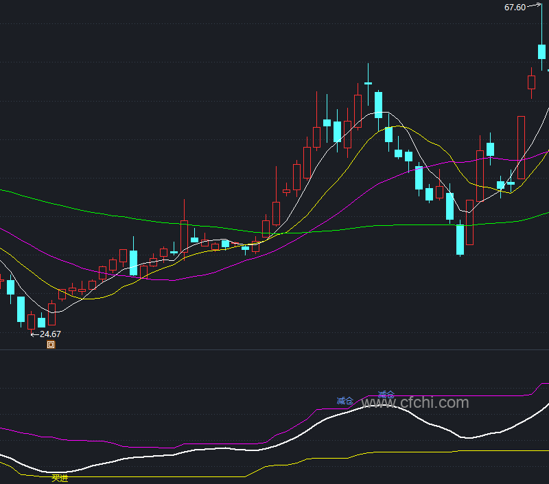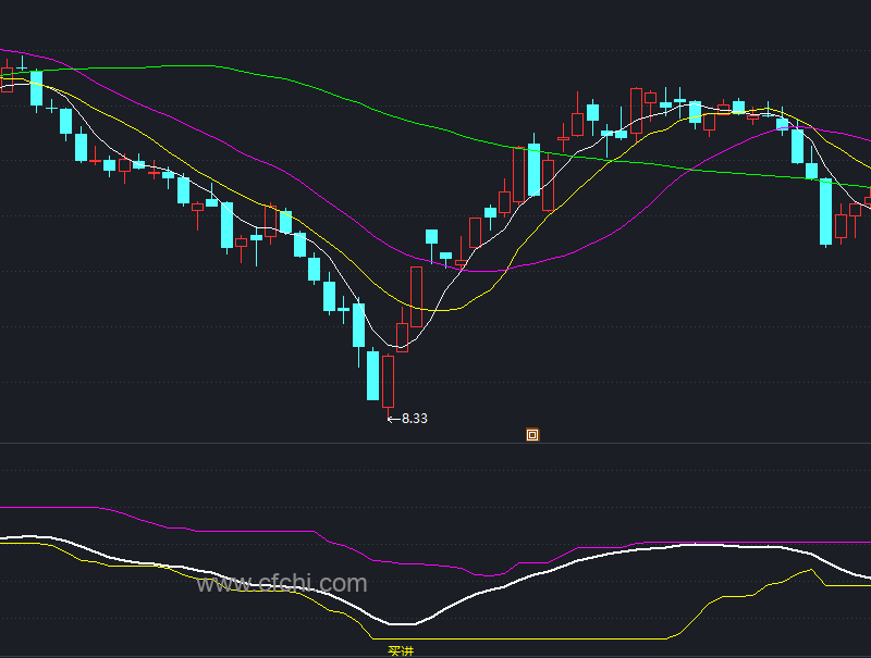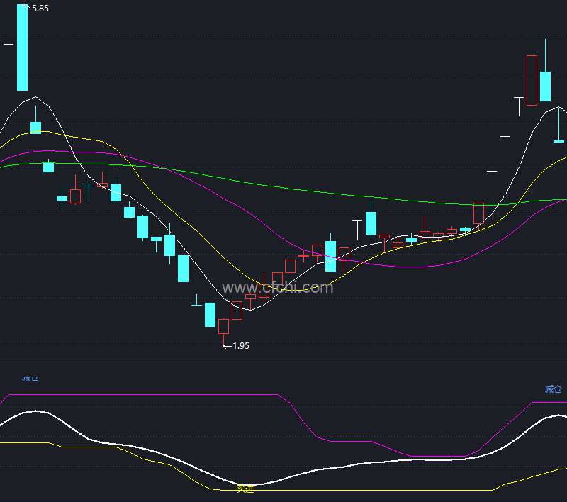 当这些条件同时满足时,软件会在股票的最低价附近画一个黄色标记,告诉你:“这是一个黄金机会!”