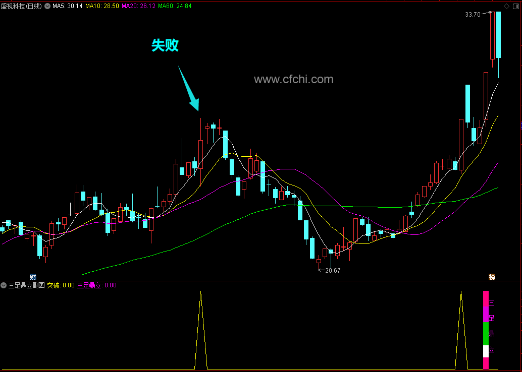突破信号:盘中预警使用和尾盘均可,看个股操盘能力,上车后不破信号当天阳线的实体可持有!