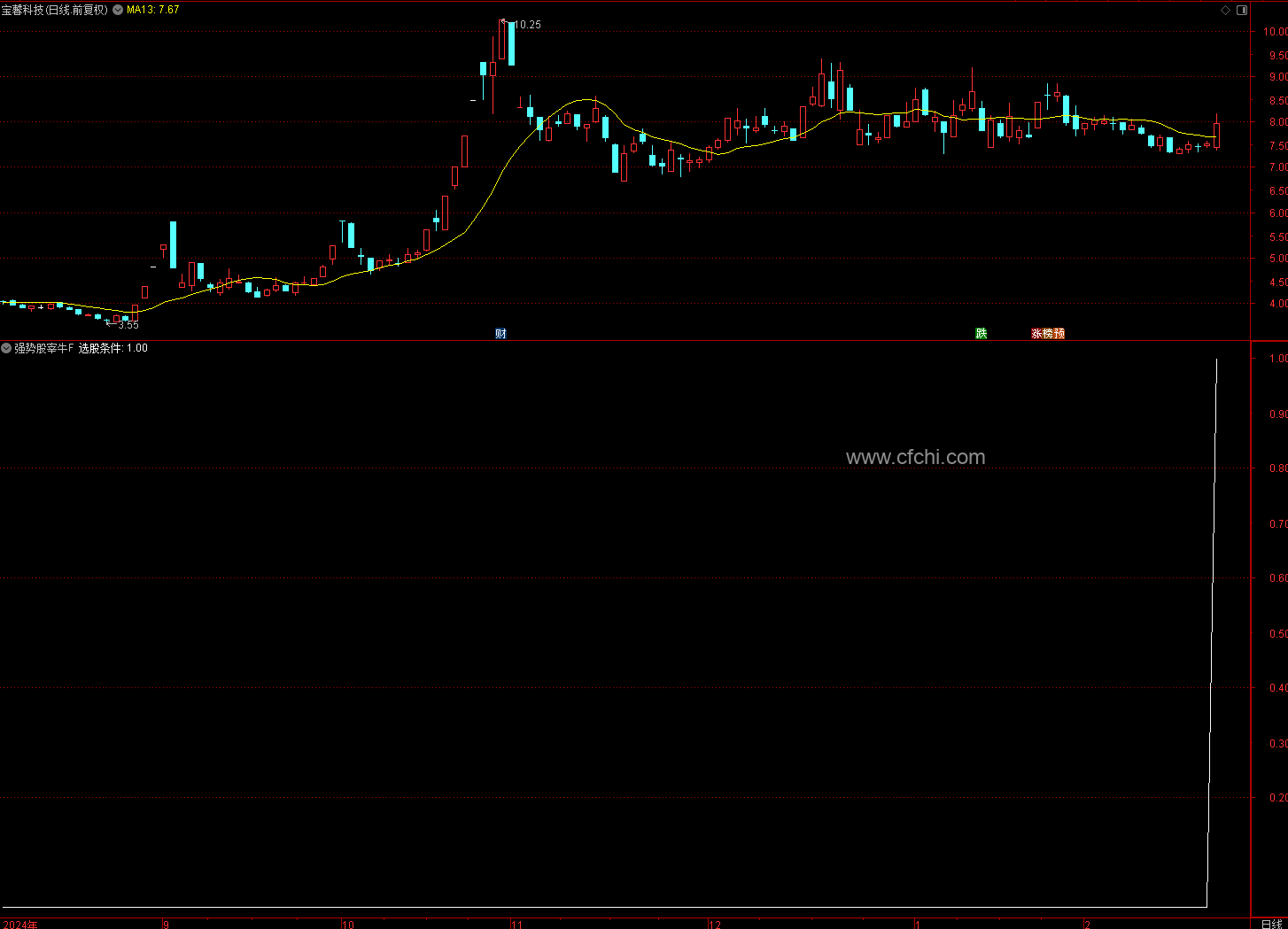 财富池指标公式网(www.cfchi.com)提醒您:指标公式是通过数学逻辑角度编写而来,仅是股票分析环节中的一个辅助工具,对股票选股效率和分析便捷上起到一定的作用,股市是具有不确定性和不可预测性的,请正常对待和使用指标公式!