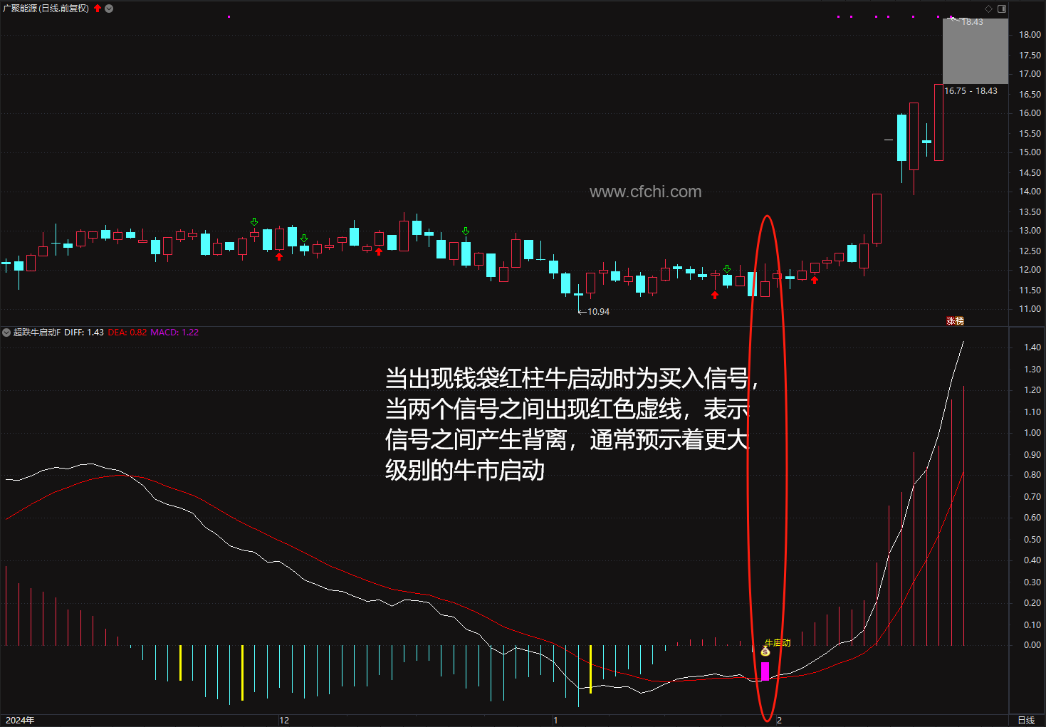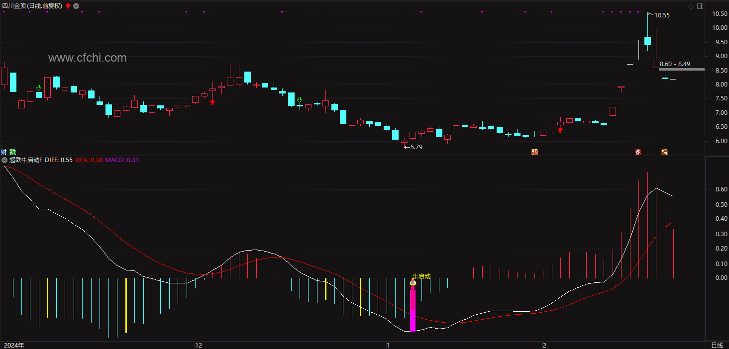 (通达信超跌牛启动指标是超跌之后的企稳拉升信号,博大涨,指标源码,手机电脑通用)