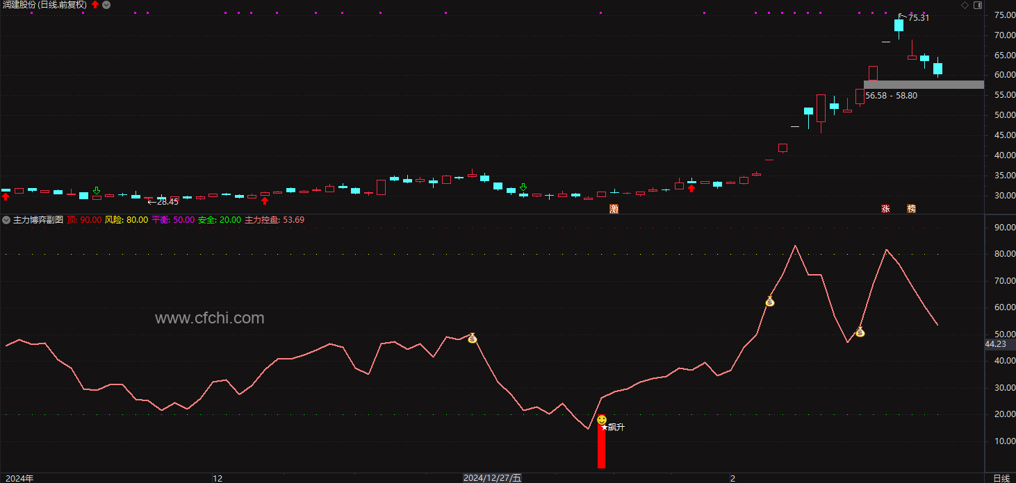 财富池指标公式网(www.cfchi.com)提醒您:指标公式是通过数学逻辑角度编写而来,仅是股票分析环节中的一个辅助工具,对股票选股效率和分析便捷上起到一定的作用,股市是具有不确定性和不可预测性的,请正常对待和使用指标公式!