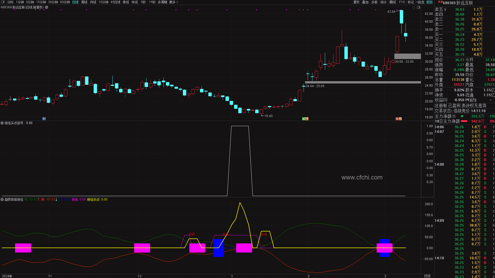 【通达信】极致操盘线主图+烽火狼烟副图指标,主力进出有痕迹!源码分享