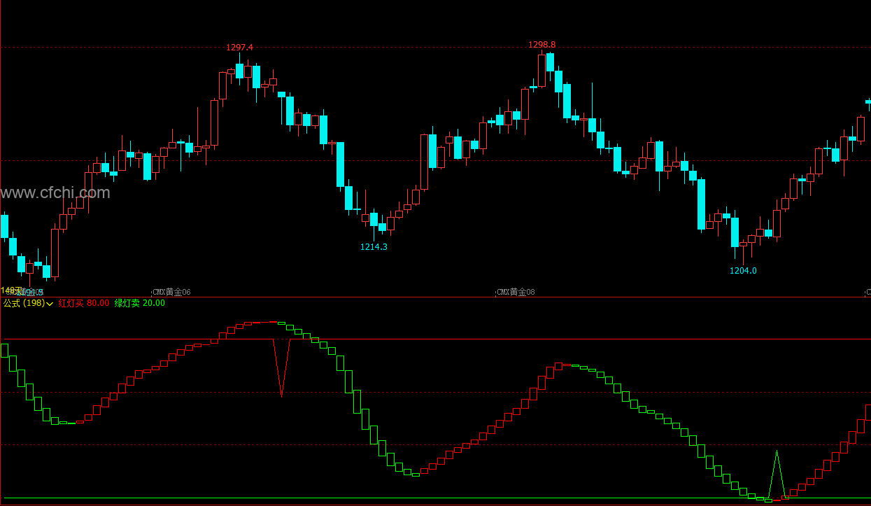 (文华财经指标公式 红灯买卖副图指标 无未来 无加密 公式源码文件)