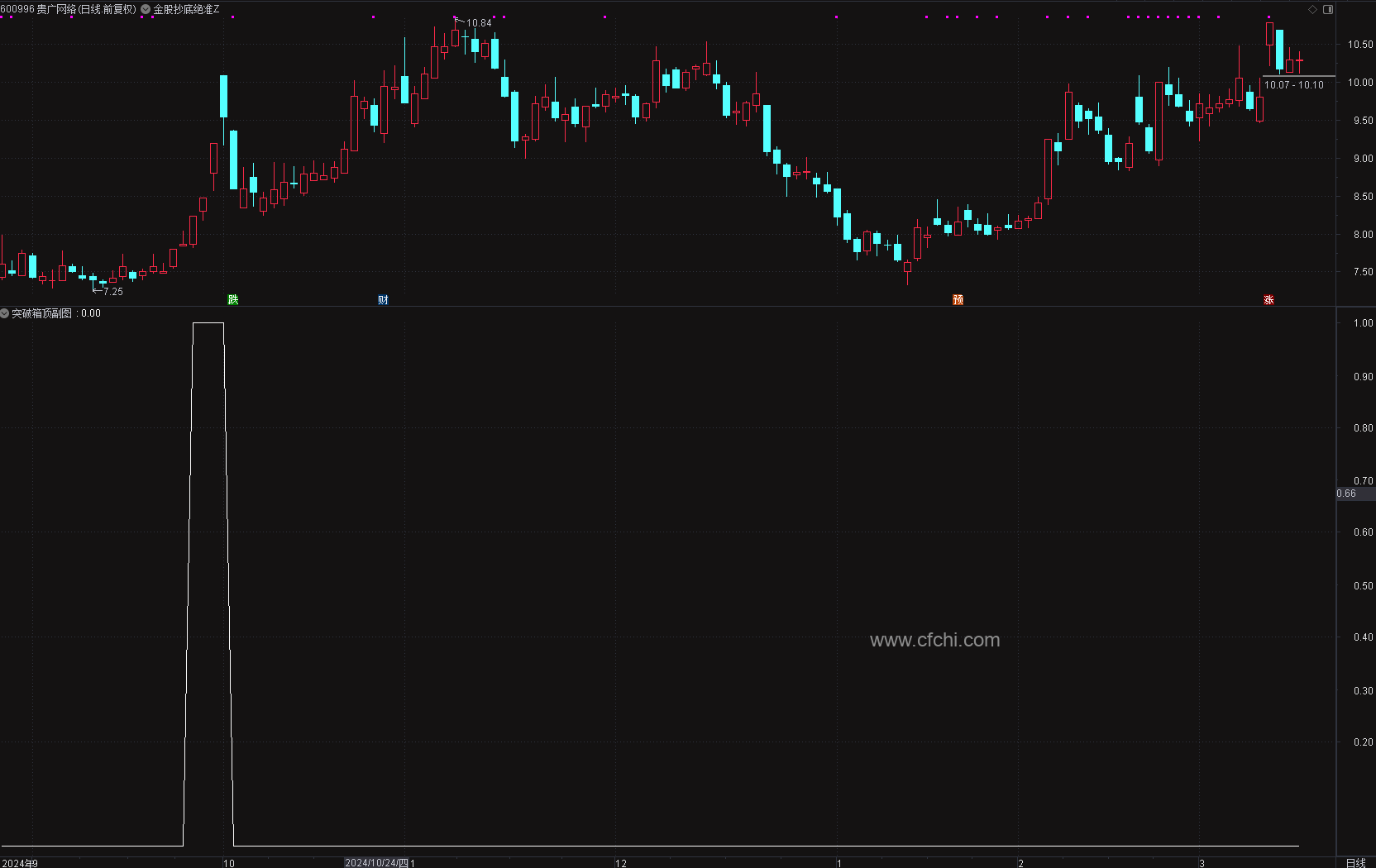 财富池指标公式网(www.cfchi.com)提醒您:指标公式是通过数学逻辑角度编写而来,仅是股票分析环节中的一个辅助工具,对股票选股效率和分析便捷上起到一定的作用,股市是具有不确定性和不可预测性的,请正常对待和使用指标公式!