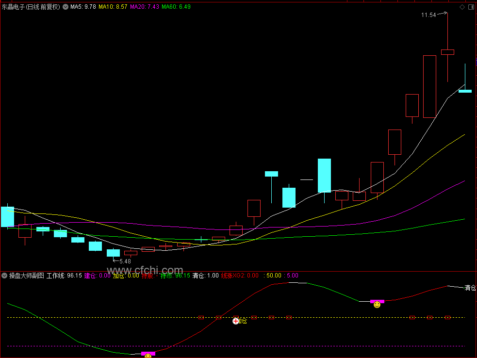 - 顶天立地:股价放量突破前高配合清仓信号;
